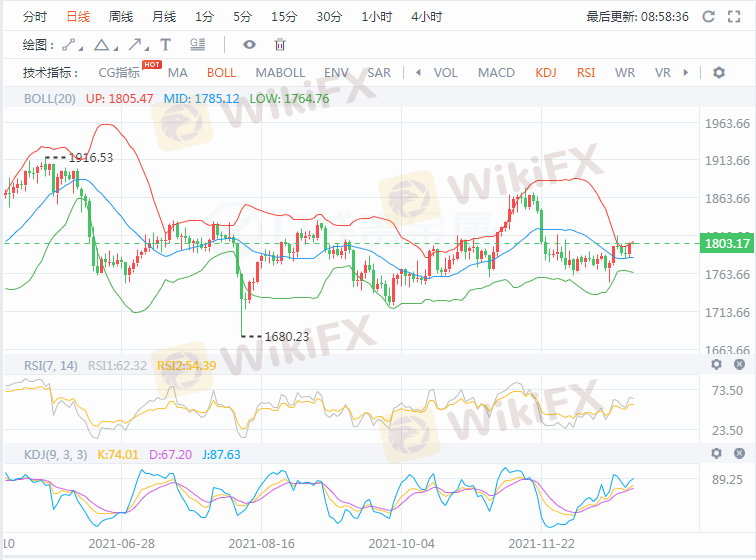 早盘在1800上方没有强势上行的走势下可以择机布局空单,看回落1795下方。