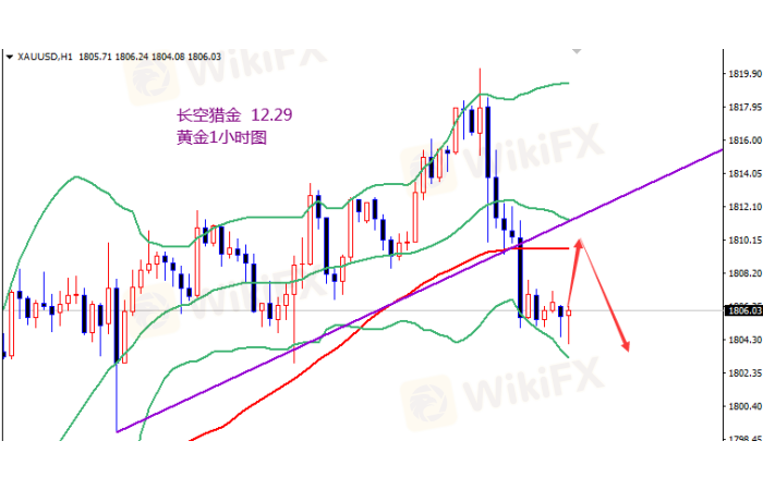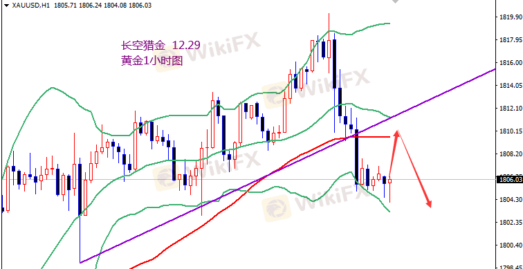 黄金1811开空,止损1816,目标1800-1795。