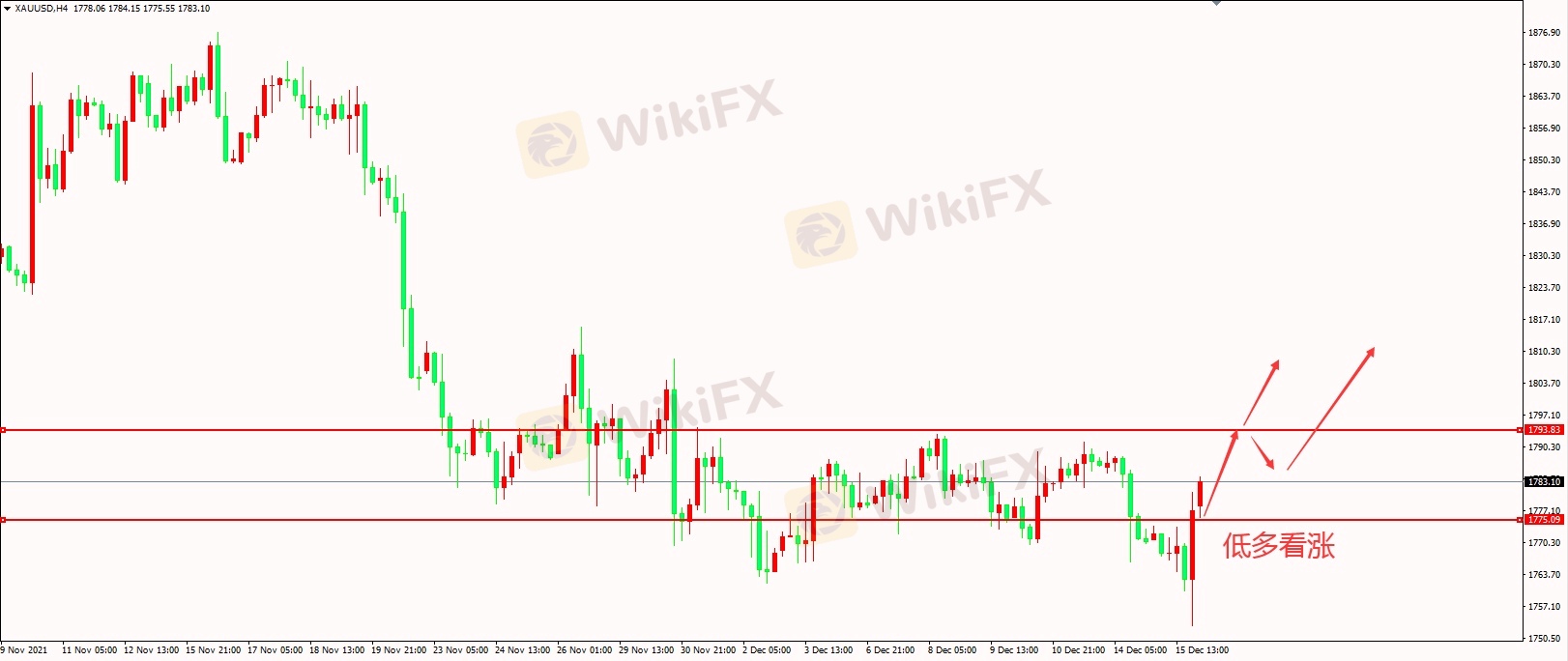 黄金昨日受市场对美联储利率决定鹰派预期影响,延续低位震荡下修,凌晨美联储如预期宣布加倍减码,并暗示2022年加息三次,此举符合市场预期,黄金因此短时出现快速下跌,跌至1752一线,然随后鲍威尔表示,货币政策的紧缩仍将是渐进式的,市场情绪得到一定的缓和,美元转跌,黄金因此也快速拉升回弹,最终收回到1780附近,日线收得一带有长下影线的小阳。
