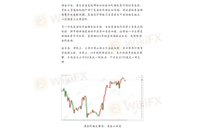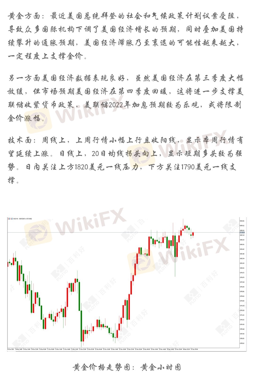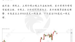 技术面:周线上,上周行情小幅上行且收阳线,显示本周行情有望延续上涨。日线上,20日均线拐头向上,显示短期多头较为强势。日内关注上方1820美元一线压力,下方关注1790美元一线支撑。