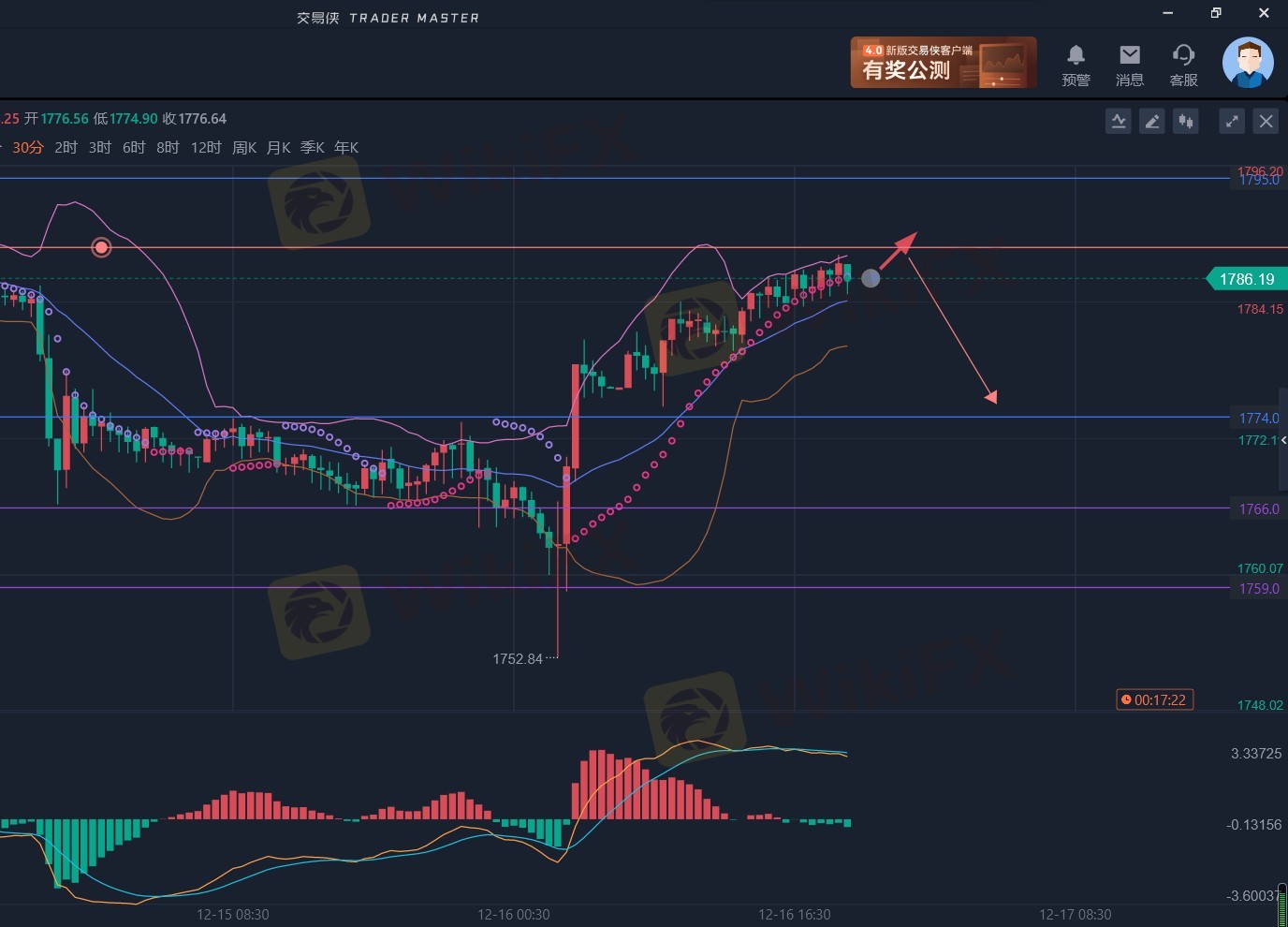 激进者1788附近轻仓空,止损1792,止盈目标1778,1772