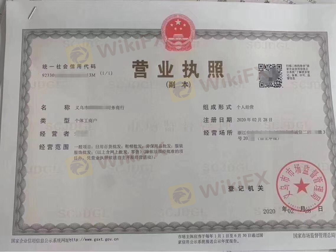 1、注册名称一般为义乌市XX电子商务商行/义乌市XX贸易商行;