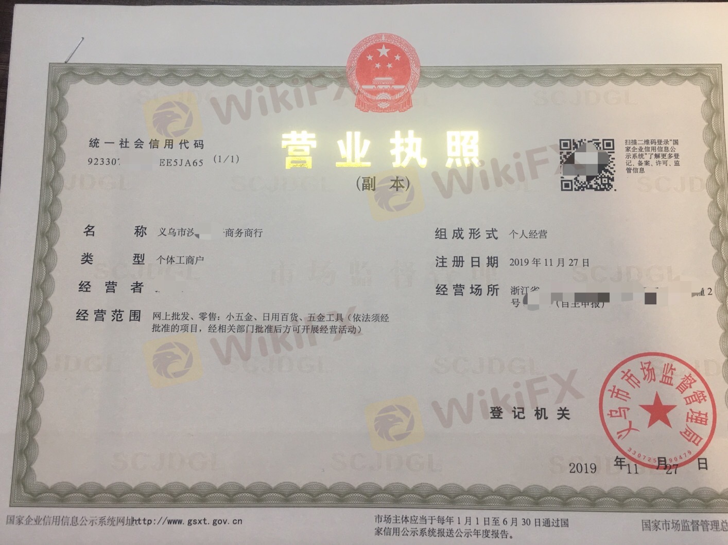 1、注册义乌个体户执照:需要个人身份证正反面照片