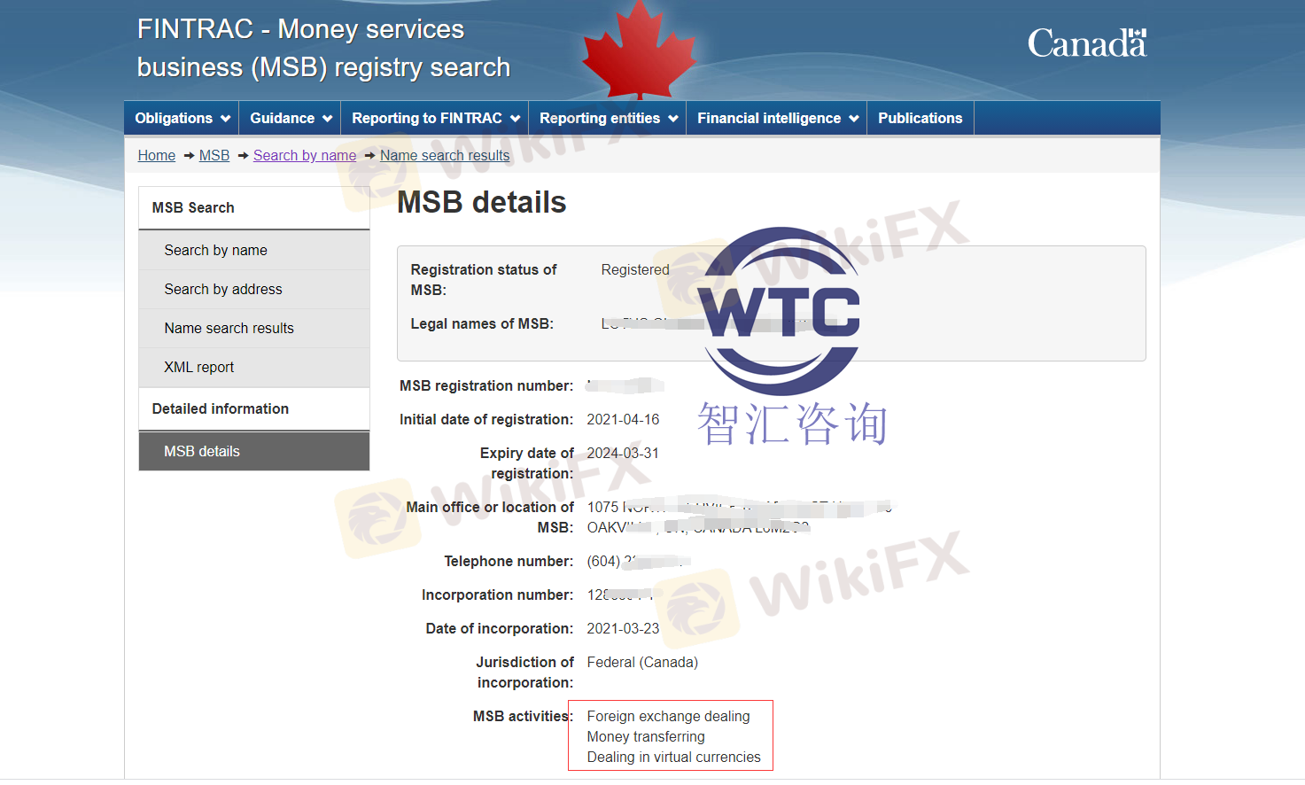 目前有加拿大MSB牌照带公司转让,无任何的负面影响,资质干净,有需要来详谈!