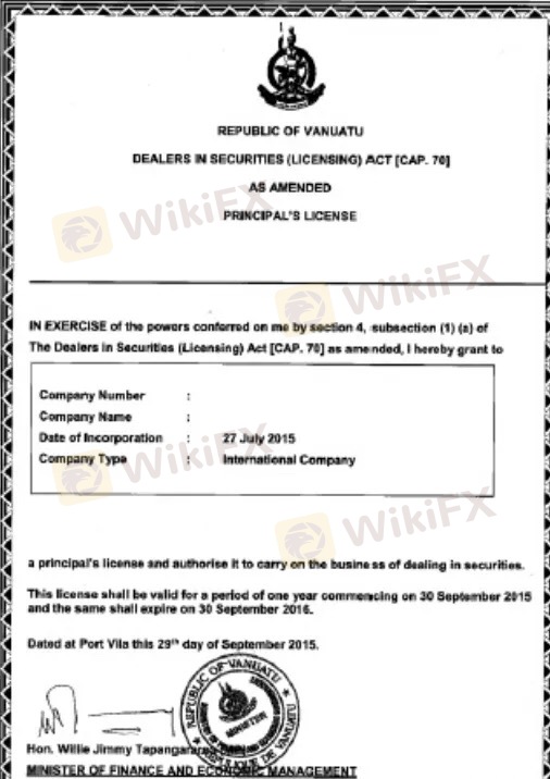瓦努阿图,正式名称为瓦努阿图共和国,是南太平洋的一个群岛,东邻澳大利亚,西邻斐济,北邻新西兰,由 13 个主要岛屿和许多小岛组成。要获得许可证,需要注册一家公司。这个过程比较快。瓦努阿图为受益人、股东和管理人员提供高度保密。此外,公司在成立后的 20 年内免征资本利得税、利润税和印花税。瓦努阿图的金融服务由瓦努阿图金融服务委员会 (VFSC) 监管。瓦努阿图是资源有限的外汇经纪商的理想地点,因为资本(或债券)要求相对较小。瓦努阿图金融牌照成本低、注册速度快吸引着越来越多的海外商人。瓦努阿图金融牌照即金融机构经营许可证,是批准金融机构开展业务的正式文件。牌照是由瓦努阿图金融服务委员会(Vanuatu Financial Services Commission,简称“VFSC”)发出,并接受它的监管。VFSC金融牌照成为全球外汇行业监管新趋势。目前,作为全球为数不多的离岸金融发达区之一,瓦努阿图金融业正受到政府的大力扶持。