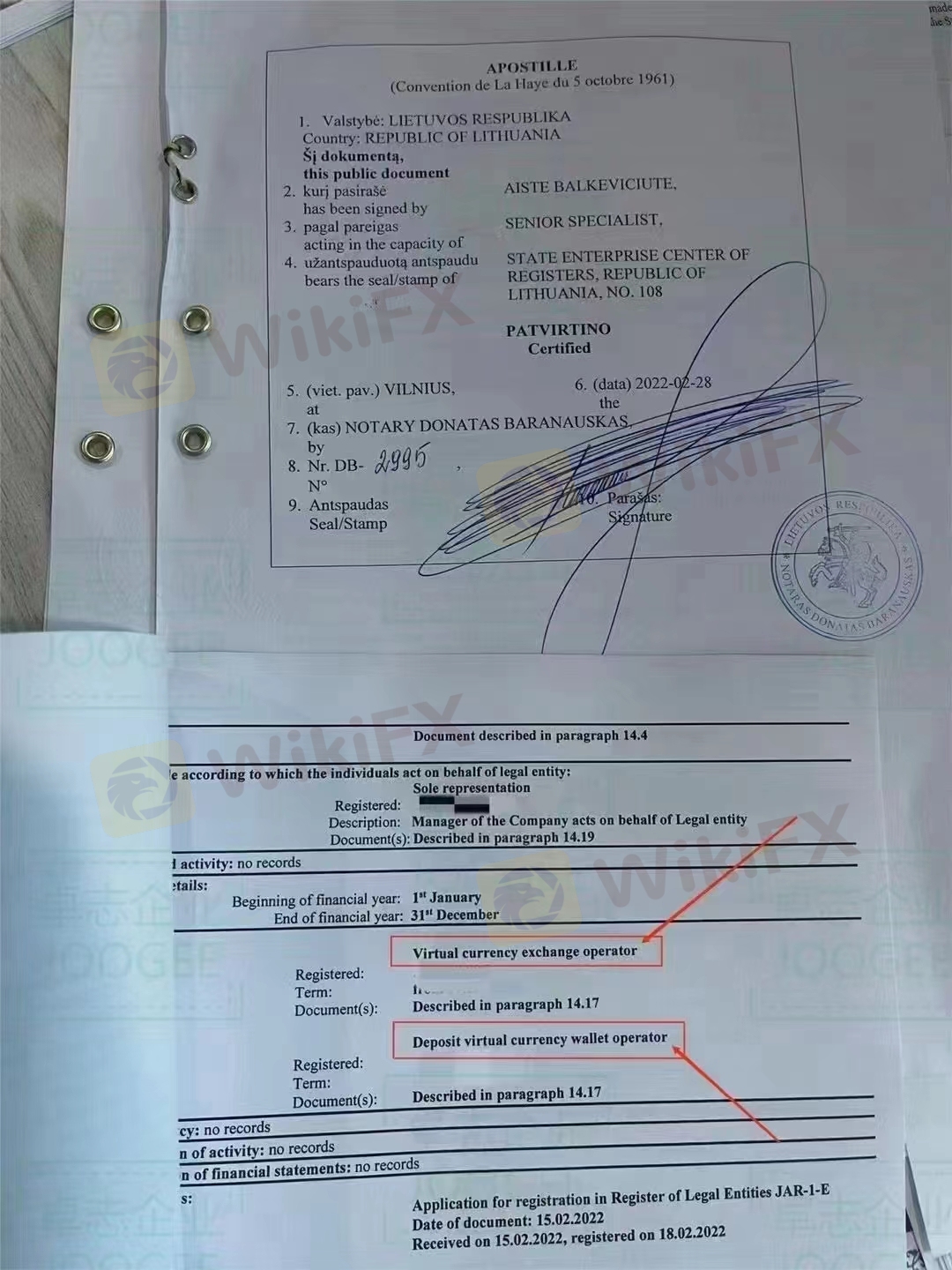 立陶宛有两种用于虚拟货币运营的加密许可证: