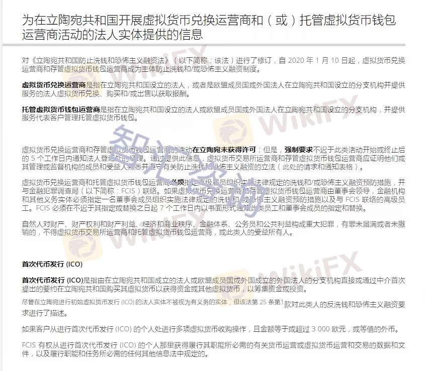 立陶宛有两种用于虚拟货币交易的加密许可牌照: