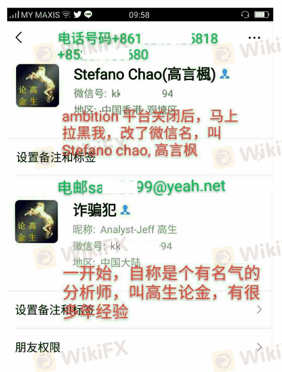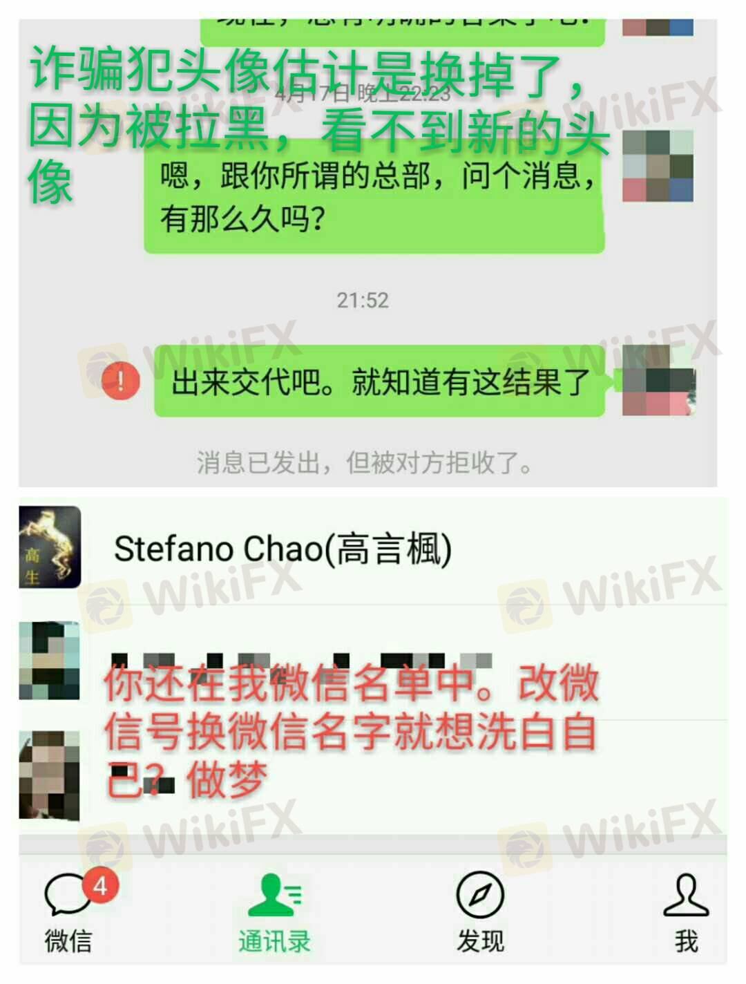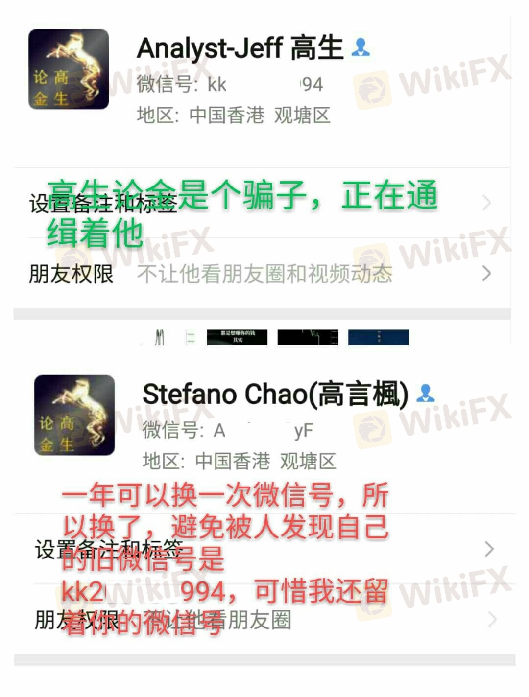 改名去Stefano chao 高生枫,最近修改了微信号变成Ana***-GyF,应该是开黑平台准备新的诈骗,如果有投资者遇到他,请回避