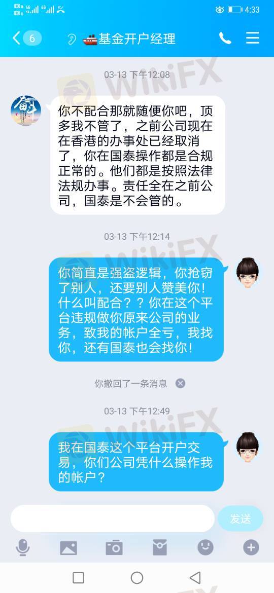 开户经理王晓寒通过公司平台漏洞取得客户的帐号和密码,盗取客户资金十余万,投诉到公司平台至今无任何处理意见,王晓寒为了取消这个投诉,答应归还盗取资金,现人间蒸发!!!