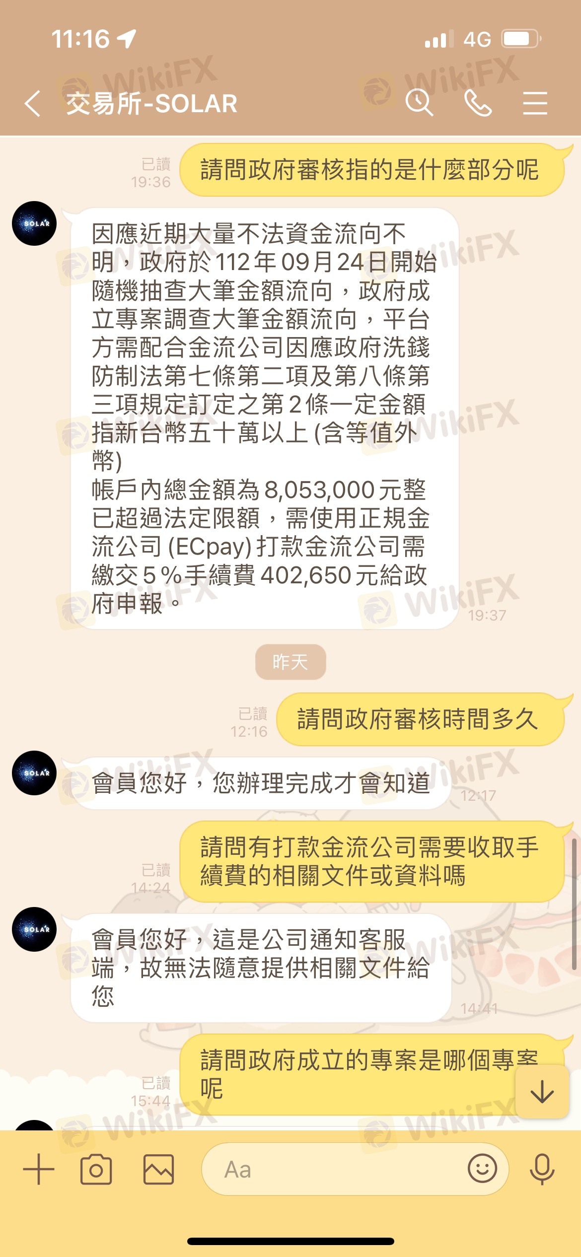 提領後未到帳,詢問交易所表示要代收手續費給金流公司後交予政府審核