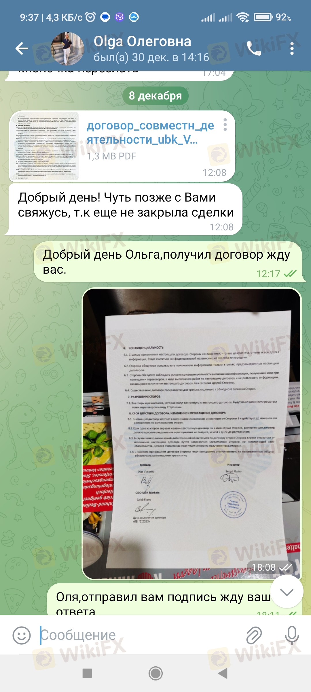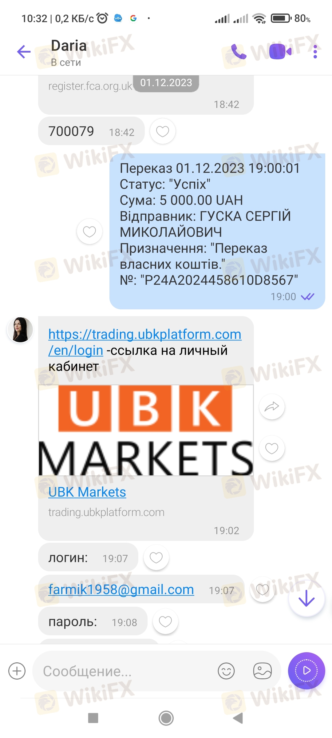 Компания UBK пообещали вывести деньги из другой компании, которая забрала у меня 8000$.Я с UBK заключил договор, чтобы стать ихним клиентом,это давало право компании защищать мои интересы.Деньги они вроде нашли и начали делать перевод 6000$.Вот тут и началась проблема.Надо было платить за печати, затем что я у них официально занимаюсь деятельностью.Одним словом все проплатил.Залез в бешеные долги ( и по сей день в них )а в результате ещё предоставили платёжку на 500$.Разумеется оплатить такую сумму я не смог.Деньги мне так и не перевели, мой личный кабинет заблокировали.