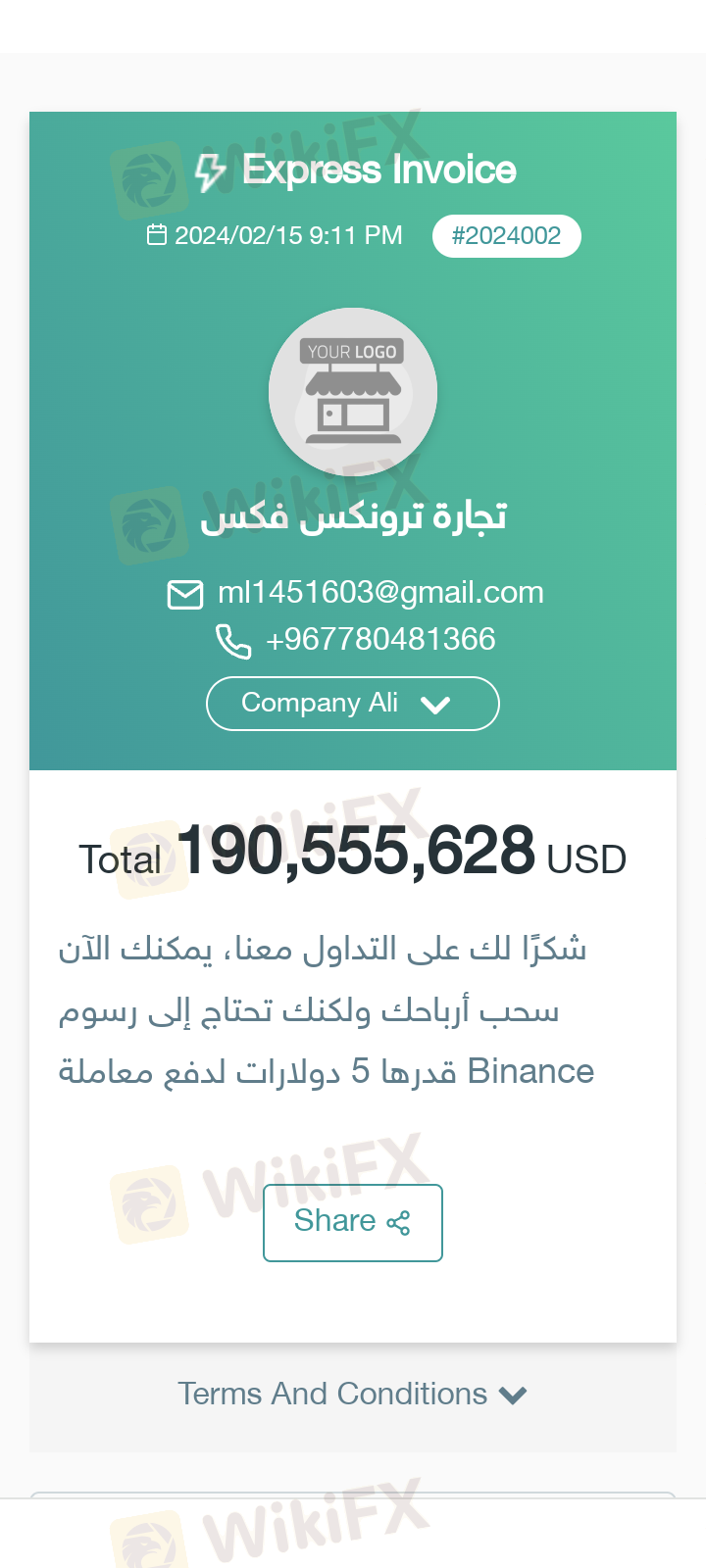 ادفع 10ريال دولار نتداول به وبعد 24ساعه أستلم أرباحك 1000ريال دولار وبعد 24ساعه سالت وين ارباحي قال ادفع رسوم 70ودفع ودفعت رسوم وبعدها عليك دفع100من أجل السحب أرباحك ودفعت 50 ولم تصلني وقاموا بفتح تتطبيق فاتورة وحظري