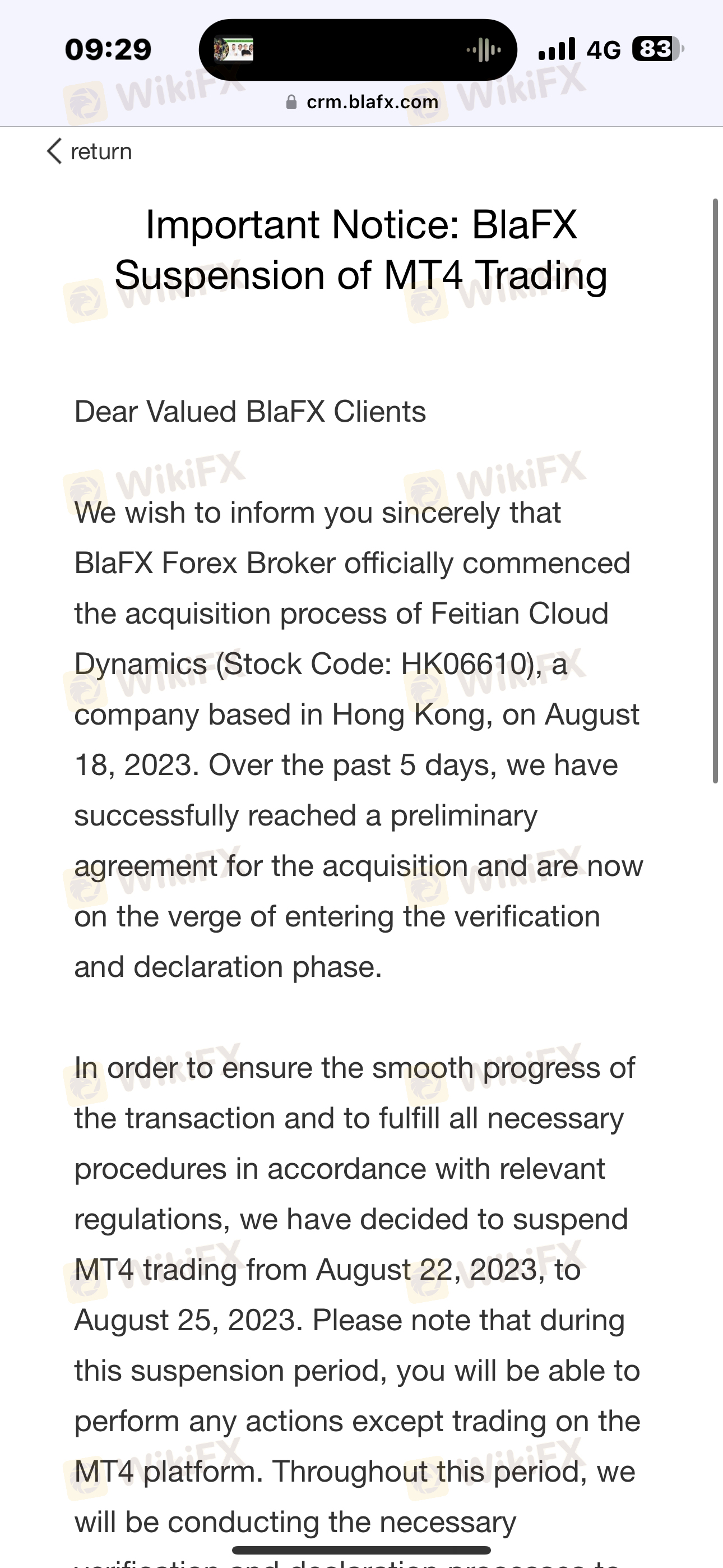 Merhaba. BlaFX bir süredir yatırım yaptığım site. Temmuz ayının ilk günlerinde promosyon adı altında hesabımıza yatırdığımız kadar promosyon ödeyeceklerini söylediler. Tabii bu tanıtım sürecinde para çekme işlemlerini kısıtladılar. geçen yıl ağustos ayının 18’inden beridir bu siteden parami alamıyorum. para bana ait ve onu alamıyorum.. şirket el değiştirme adı altında. Bize herhangi bir para çekemeyeceğimizi söylediler. Ağustos ayının 18’inden sonra %10'luk bir yatırım daha yaparsam hesabımın doğrulanacağını söylemişlerdi. bu rakam yüzde 15'ti. Bir kaç gün sonra %27'ye çıkardı BlaFX. paramı geri istiyorum. Burada yapılanlar etik değil. insanlar acı çekiyor. Bu ortamda evini, arabasini satmak için banka kredisi kullanan insanlar var.