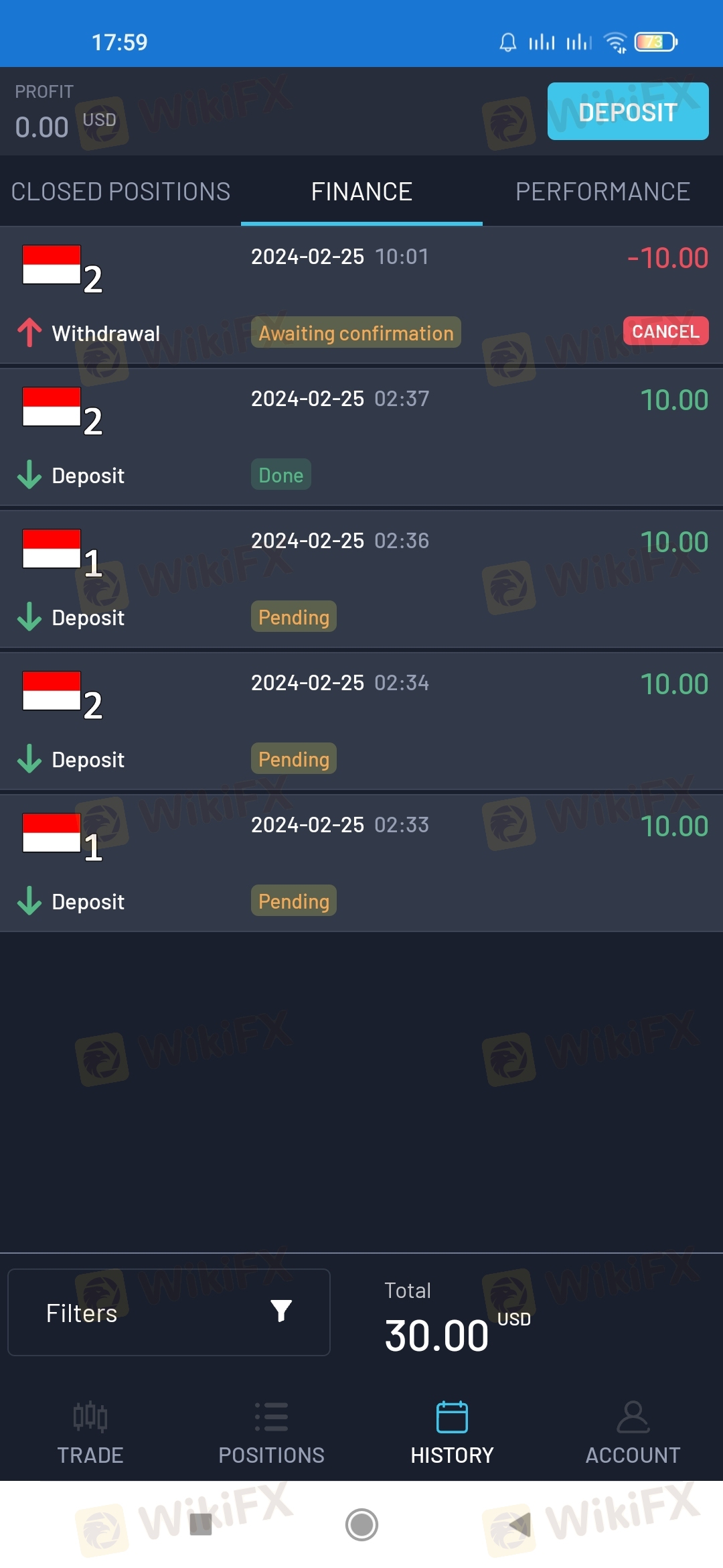 鉴于外汇行业的错综复杂,不排除有个别外汇交易商通过欺骗手段获得监管机构的合法注册。如WikiFX所公布数据与实际情况有不符之处,请通过WikiFX“投诉”和“纠错”功能,向我们提出,我们将及时进行核实查证,并公布相关结果。