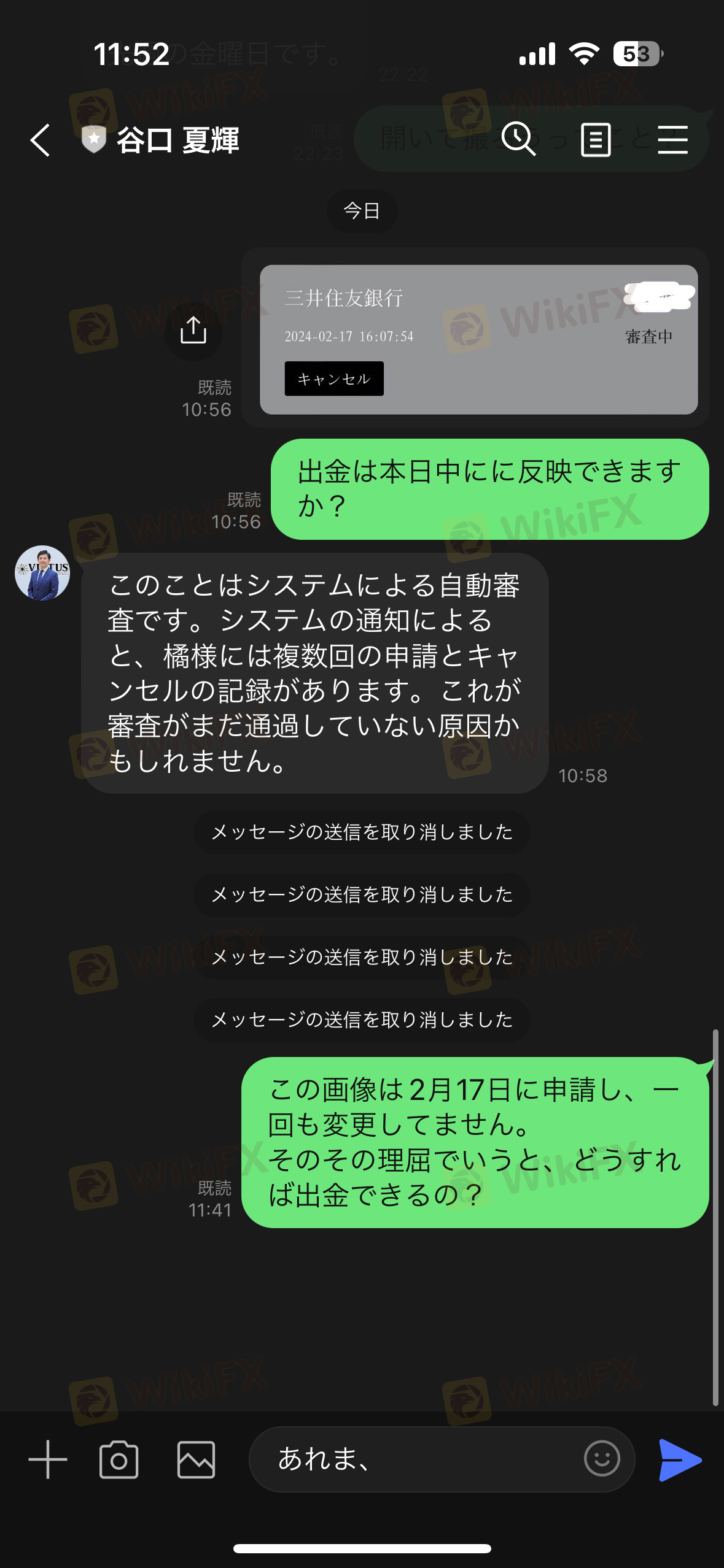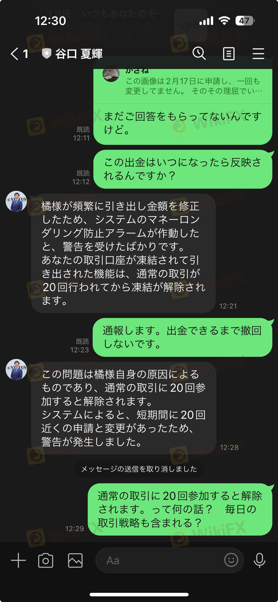 - 出金機能の強制停止とアカウント凍結の条件について、事前の説明がなかった。