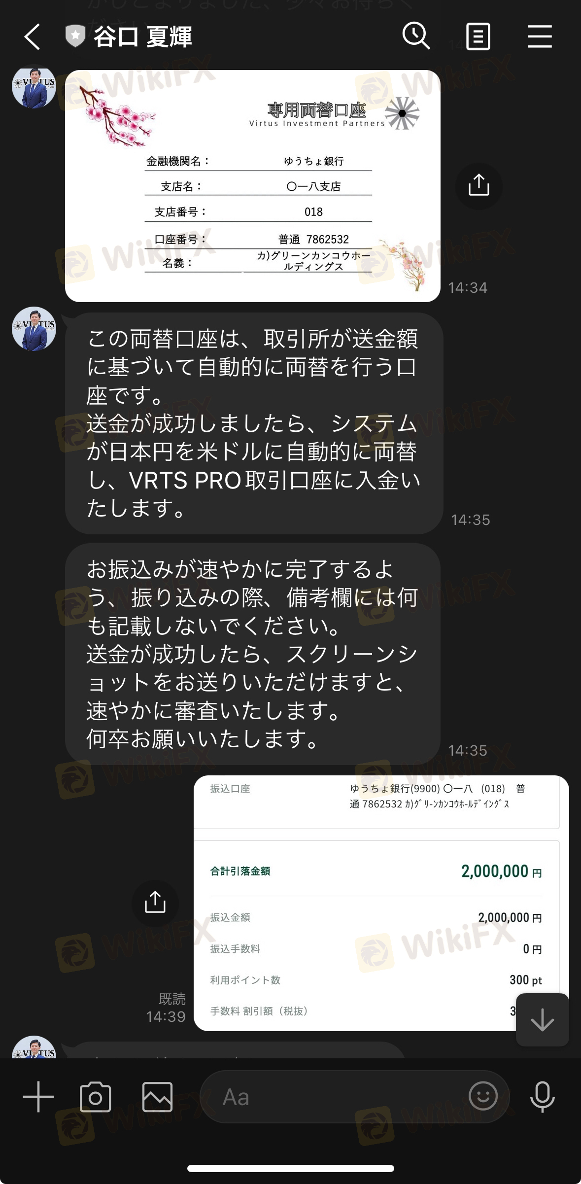 - 凍結されたアカウントを解除するには、50%の資金を別途支払う必要があるとされており、これについても事前説明がなかった。