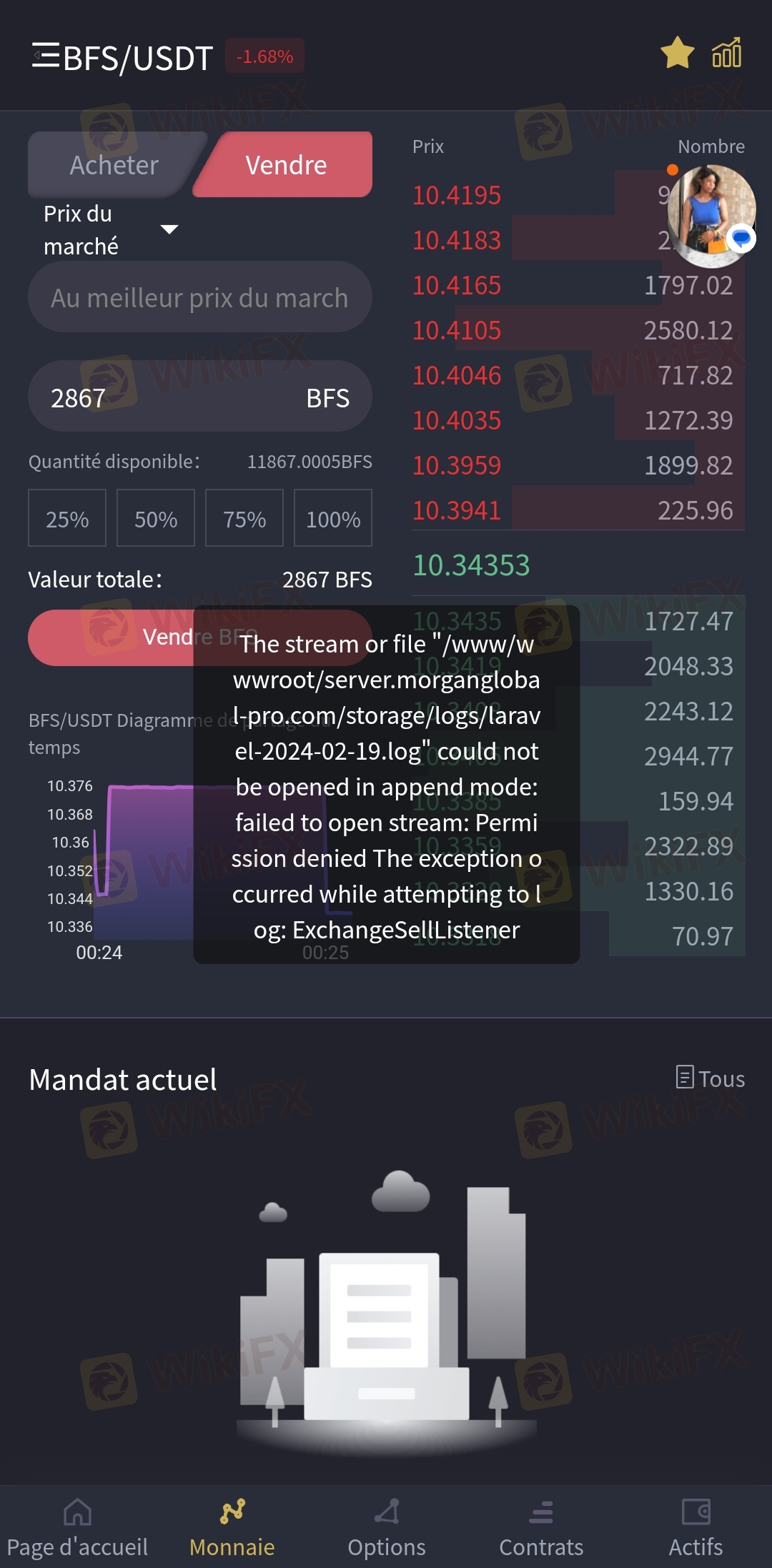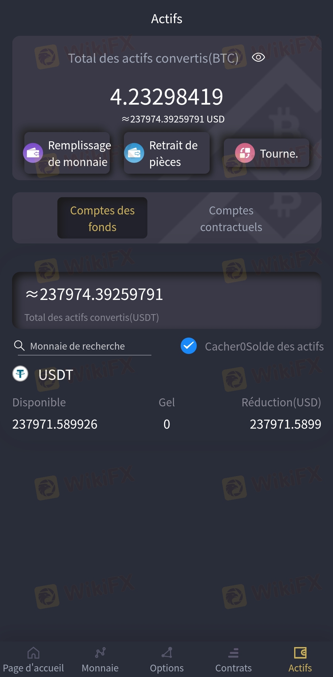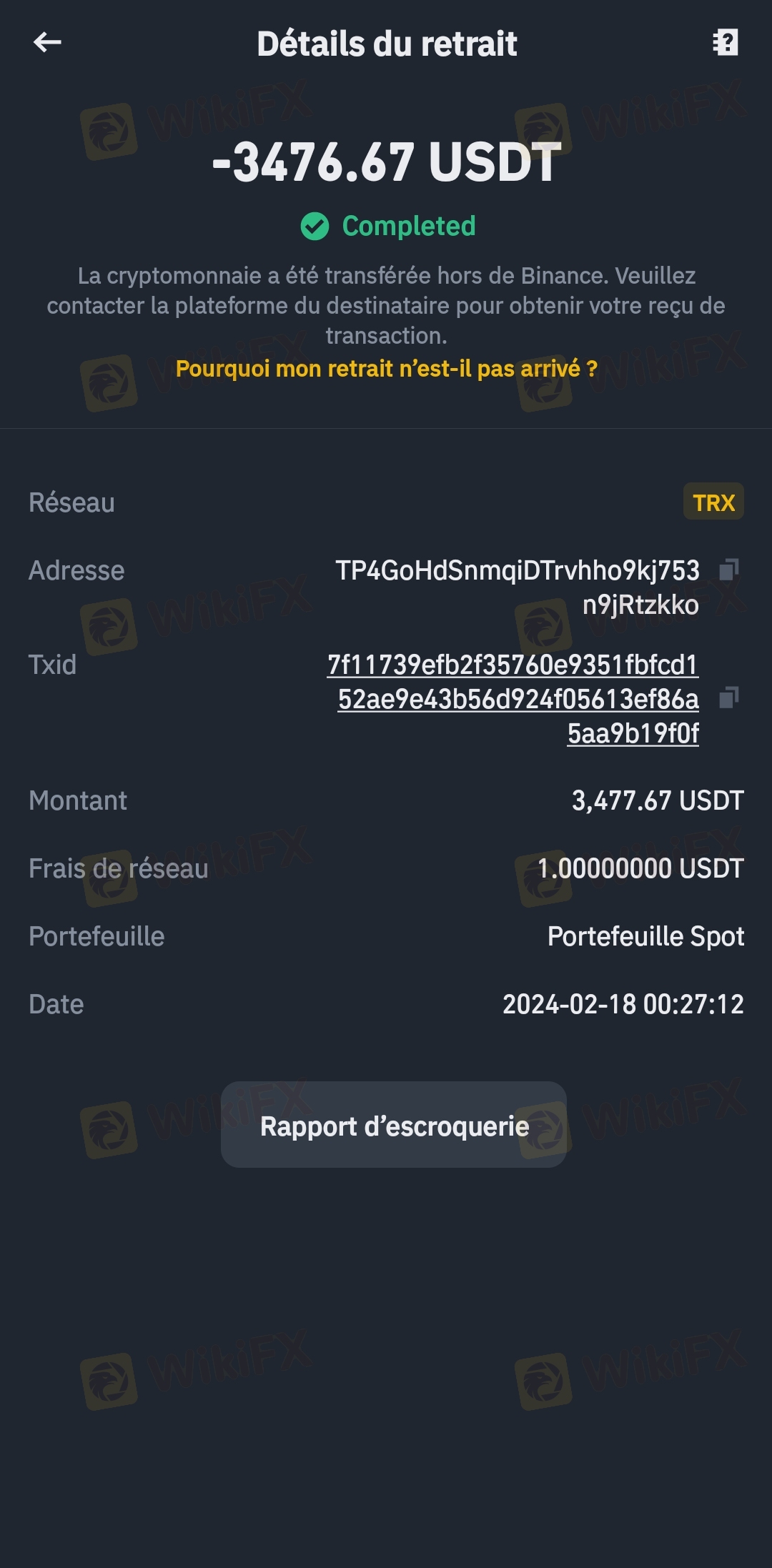 Quand j'ai voulu retirer l'argent le service client me demande de payer l'impôt qui fait 11,5% qui fait environ 20322$ a une adresse USDT