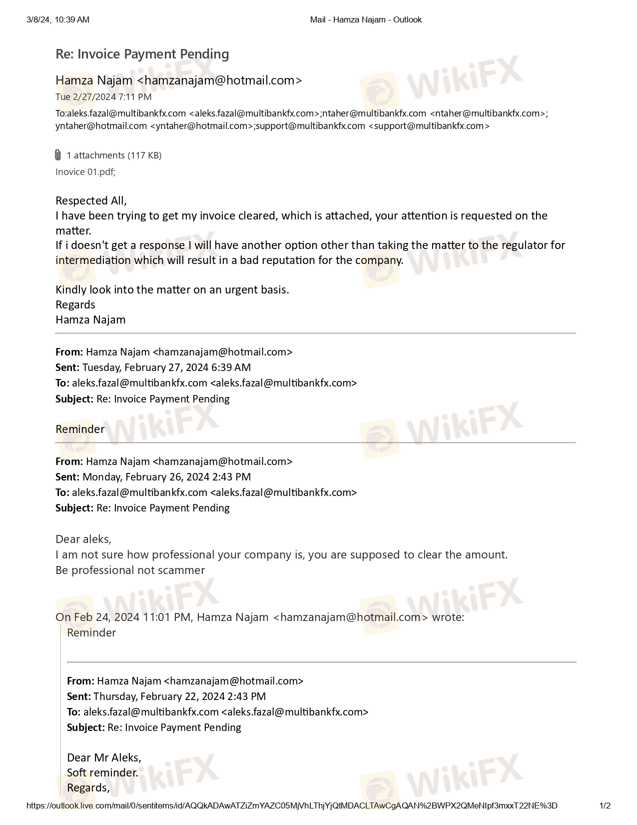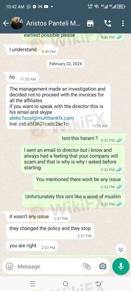 Dear All Reader,I would like to tell everyone that multibank is scam broker, they offered a partnership and had to pay me an amount of USD 4200, which they didn't pay and neither is responding to any email. The communication with the manager is also attached herein, he clearly mentioned that company is doing wrong and I am on right, they are not responding to the emails and have blocked the account so I cannot take any screenshot of the earnings.