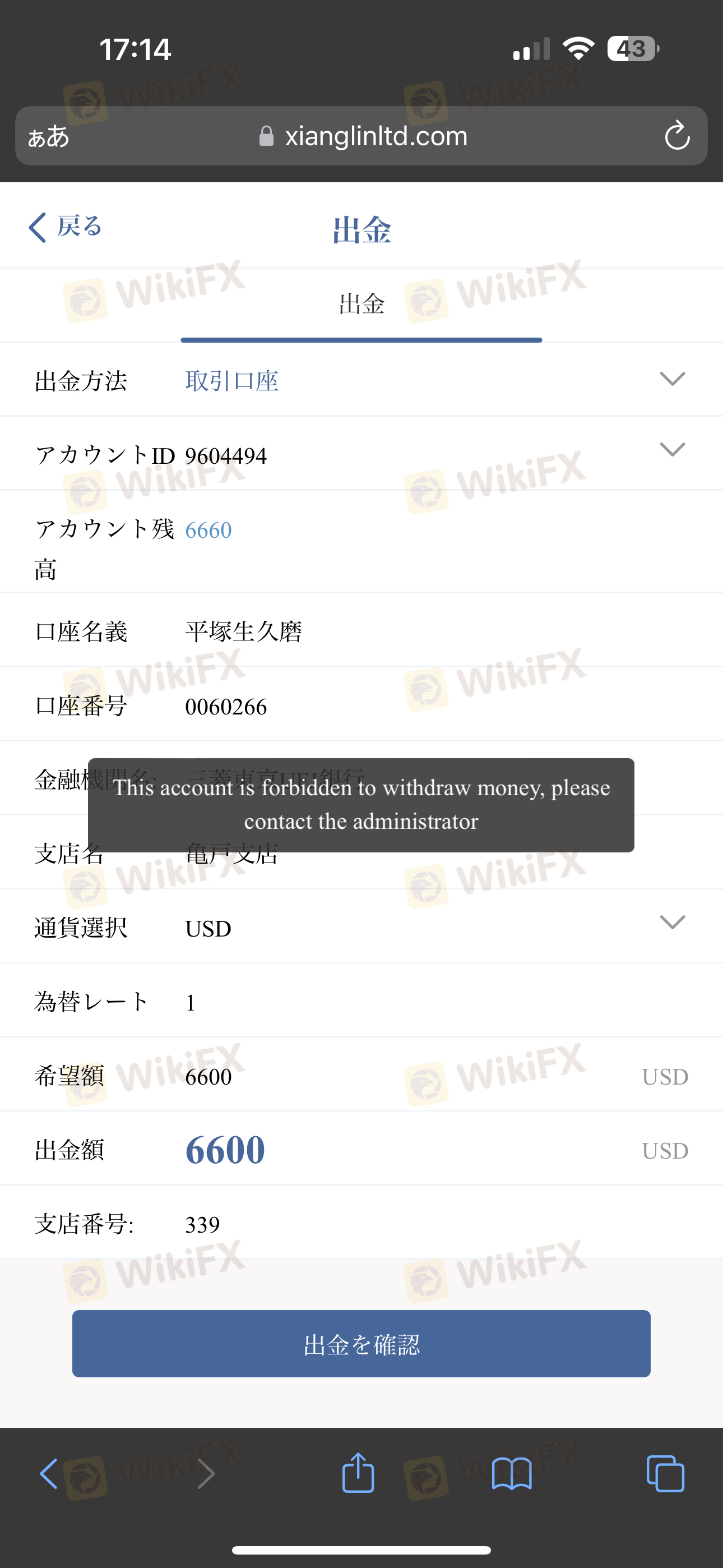 インスタグラムからLINEグループに招待され、xianglinで FX取引をするように指示された。
