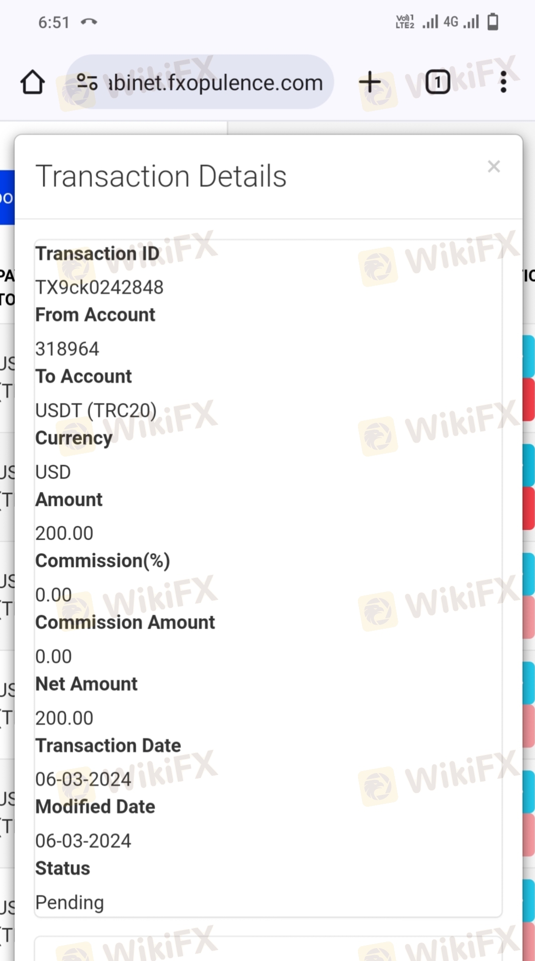 pending withdrawal request from 6 March.