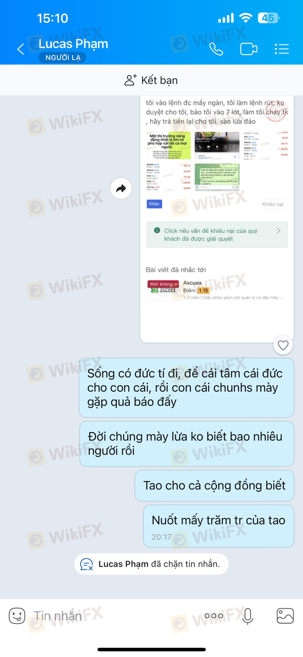 xin mội người hãy lấy lại công bằng giúp tôi, khi tôi bị sàn ascex, lừa đảo lùa gà, khi tôi nạp 50tr vnd vào tk để kiếm lời, tôi đánh đc lên 8000 usd, làm lệnh rút, 2 ngày sàn ko duyệt, tự ý cho đi lệnh số lót lớn để nhà đầu tư cháy tk, ép ndt lạp vôn, khi tôi ko đủ khả năng nạp, họ đánh sập tk của tôi, và chặn mọi liên lạc của tôi