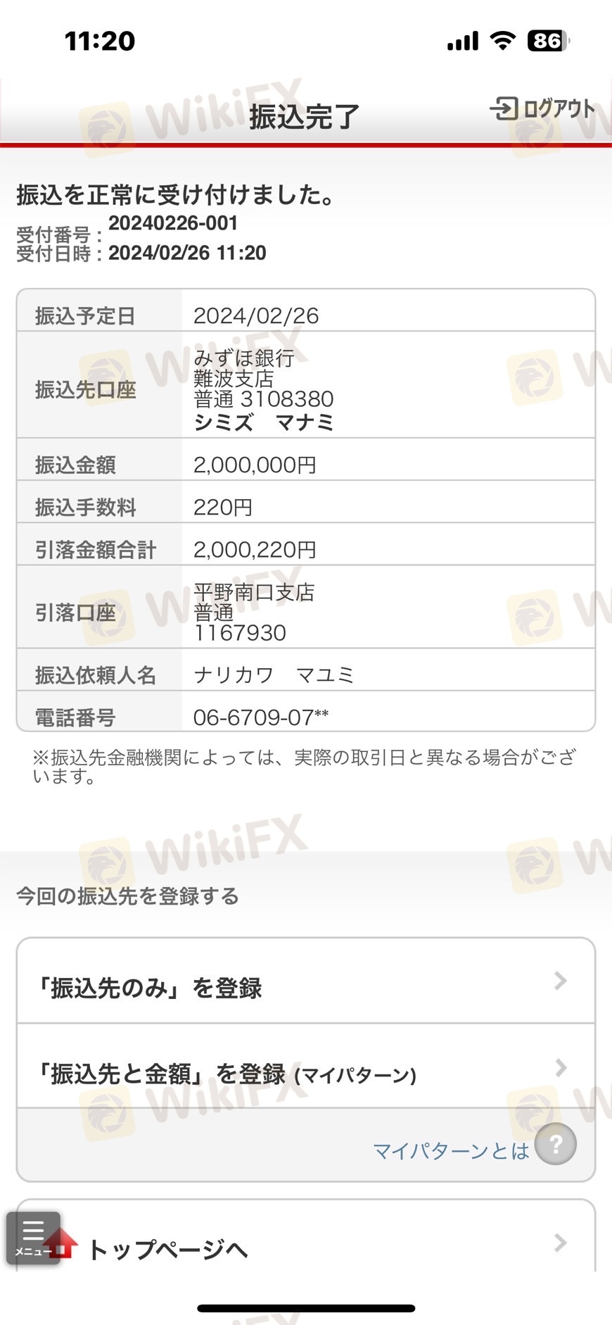 なんとか交渉して出金希望額の20分のIだけを振り込んでもらえました。次の出金までは10営業日必要と言われたが、それも聞いてない!