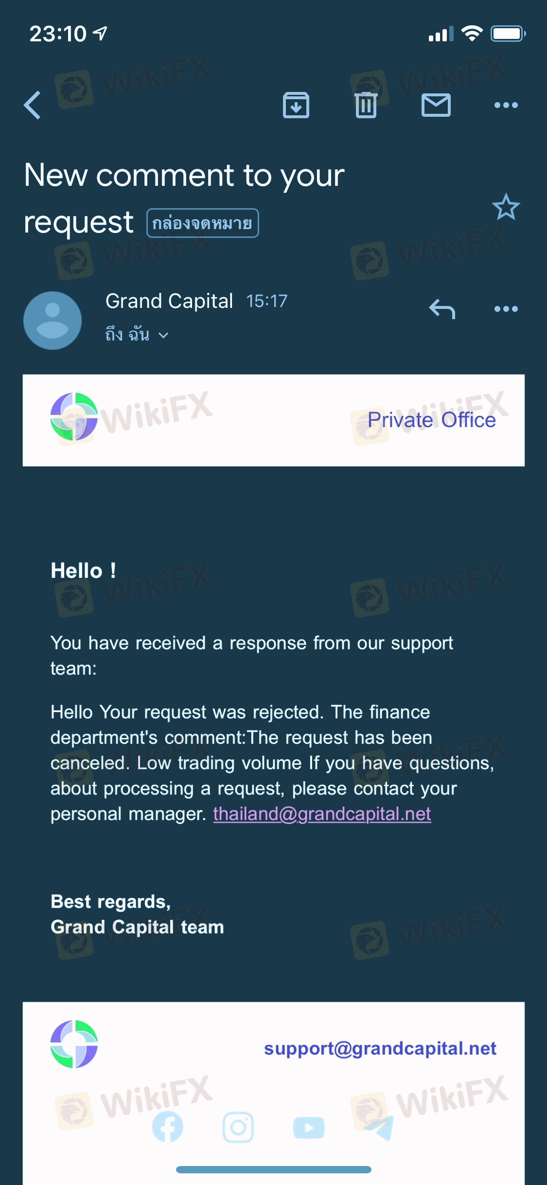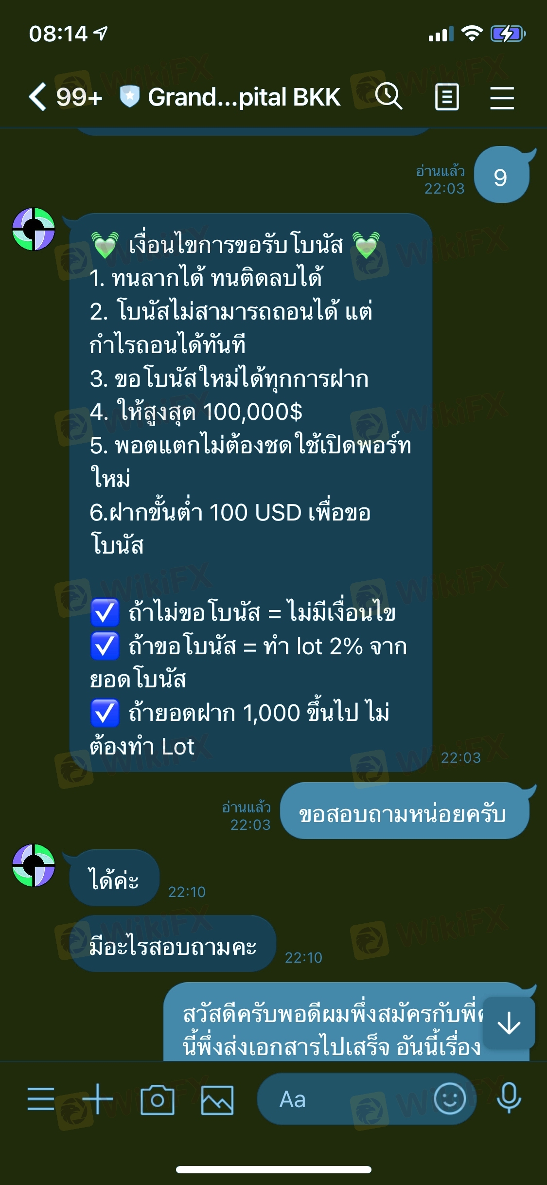โอเค เพิ่มหลักฐานแล้ว กรุณาอนุมัติ ฉันได้ทำการถอนเงินจากนั้นทางโบรคติดต่อฉันมาว่าฉันทำผิดกฎซึ่งคนที่นำโปรโมชั่นมาเสนอแก้ฉันคือIBและแอดมินGrandcapitalBKKและบอกเงื่อนไขฉันมาเพียงแค่6ข้อพร้อมกับข้อความว่าถ้าฝาก1000$ขึ้นไปไม่ต้องทำLotและไม่ได้บอกกฏอะไรฉันนอกเหนือไปมากกว่านี้เลย ซึ่งฉันก็ทำตามทุกอย่างแต่พอมาวันนี้ได้ทำการถอนเงินแต่ถูกทางโบรคปฏิเสธ