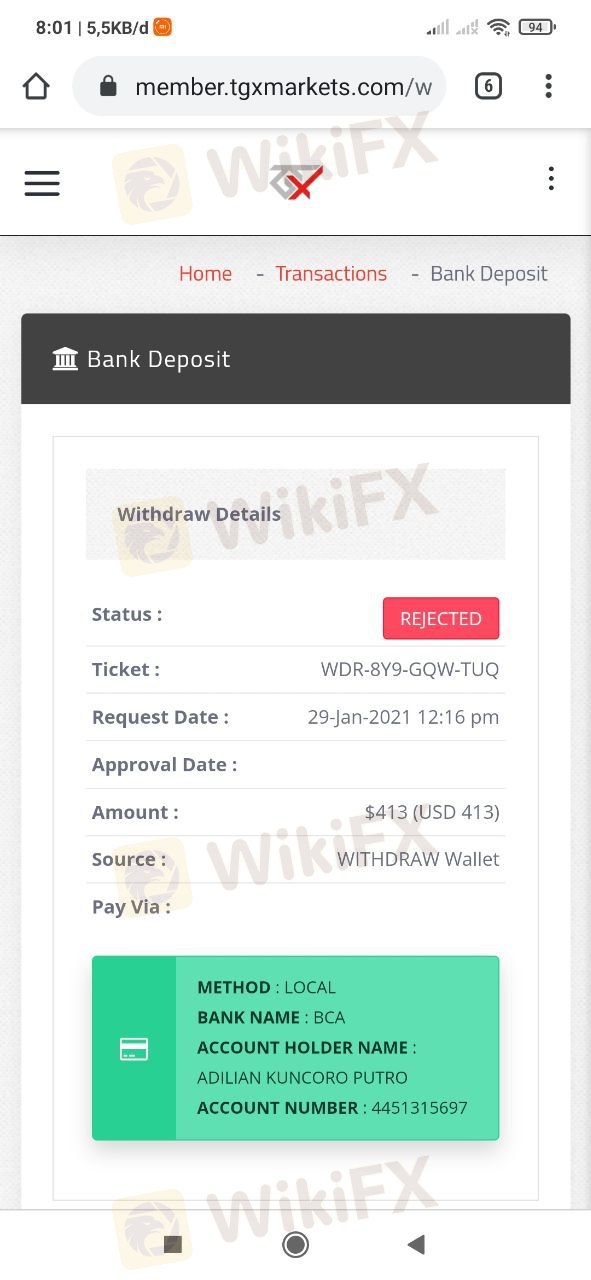 Saya trading di TGX dari bulan November 2020 semua masih aman untuk proses Depo dan WD juga cepat.