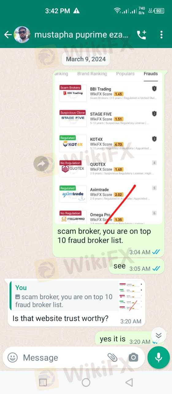I got scammed by PuPrime i have all the proofs about it and i will also attache screenshot of it.i have deposited 600 with puprime and then i earn some profit almost 700 and when i submit my request of withdrawal, they removed all my profit from my account, they are saying i abuse the terms and condition. they are saying earning profit is ilegal when they add bonus to account, they add 300 automatically to my account and just for this little bonus they removed my all profit more than 700.when i talk with manager he is asking me to deposit more fund and then i ll get my profit withdrawal but not this one, they are asking me to deposit again and he is blackmailing me about my removed fund.. then i gave them the screenshot of this WikiFx reviews about PuPrime where this broker is not 9th position and when i send him the screenshot of it then he answer me that "is WikiFx is trustworthy?"manager name is "Mustapha and Alae" AND PLEASE I REQUEST YOU TO ALL PEOPLE NEVER WORK WITH THIS SCAM BROKER AND ALSO JUST PLEASE DONT EVER WORK UNDER THESE TWO PROFESSIONAL SCAMMER MANAGERS. BROKER LINK: https://www.puprime.complease check the attachments and also help me in this, and please talk with there regulators, this broker is eating fund from clients accounts very easily and openly. and no one is stopping them.