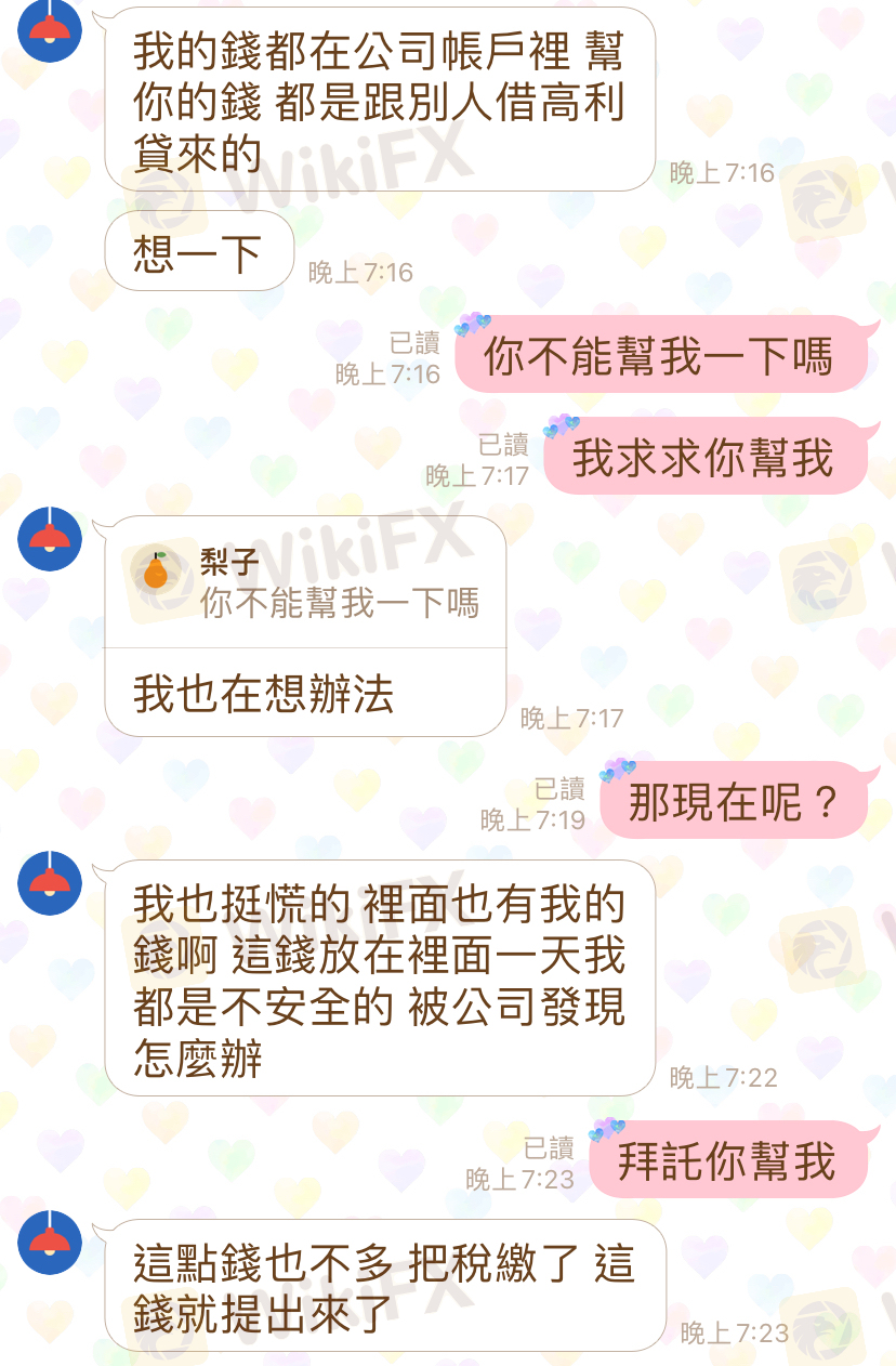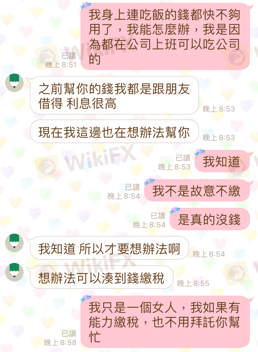 是一個網友教我操作的並且幫助我操作和儲值他也儲值一部分在我的帳號裡面 有一部分的錢是他儲值在這個平台,不是我的錢,但是大部分得錢都是我的,是我的錢現在客服人員不讓我提領錢出來說要繳稅才能提領出來,我該怎麼辦身上都沒錢了在裡面卡了40幾萬我只是一個女人不知道為何要這樣對我
