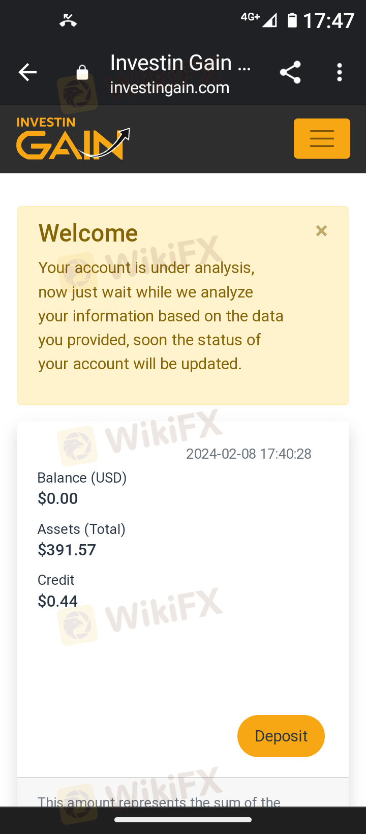 鉴于外汇行业的错综复杂,不排除有个别外汇交易商通过欺骗手段获得监管机构的合法注册。如WikiFX所公布数据与实际情况有不符之处,请通过WikiFX“投诉”和“纠错”功能,向我们提出,我们将及时进行核实查证,并公布相关结果。