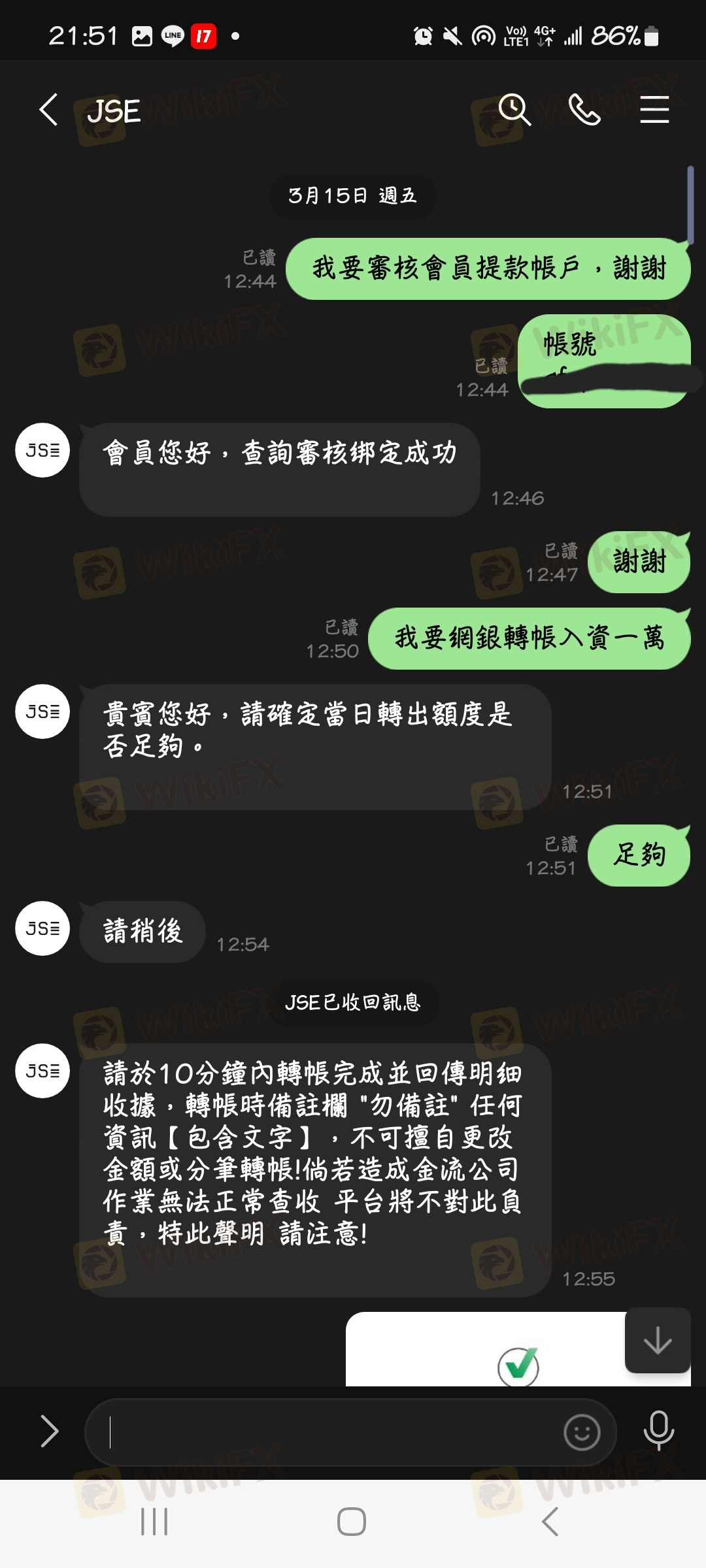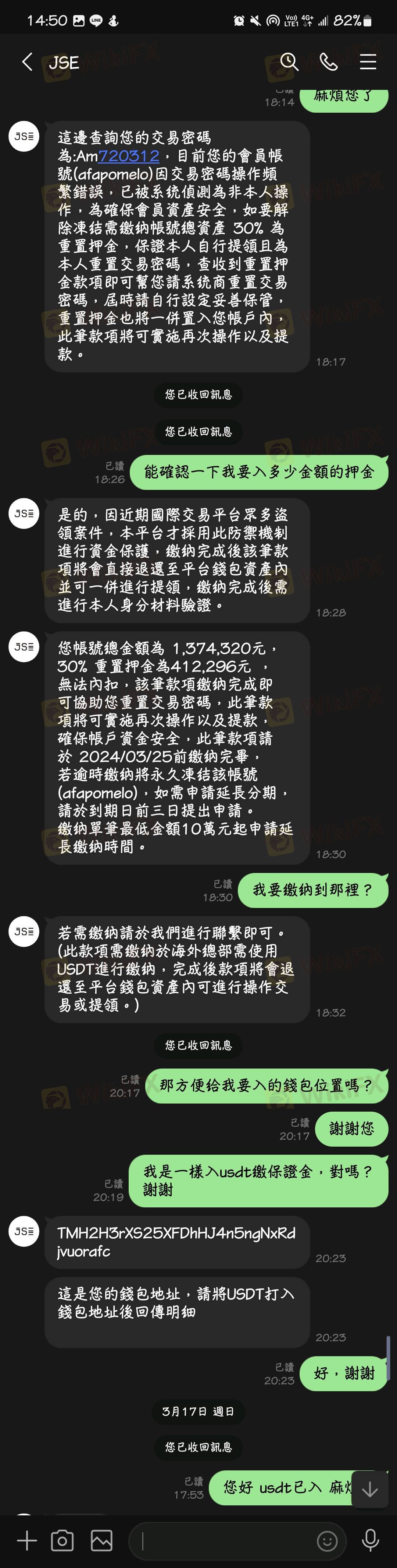 自稱投資公司業務(看招攬資料公司登記人為名人),簽署保本合約,引導註冊jseobf.com此平台(網址會一直更換),操作獲利後無法出金,表示未達平台標準需要再入金,入金操作後又以密碼有誤,需繳保證金,保證金繳納後又告知平台活動時間已超過,需重新入金操作。