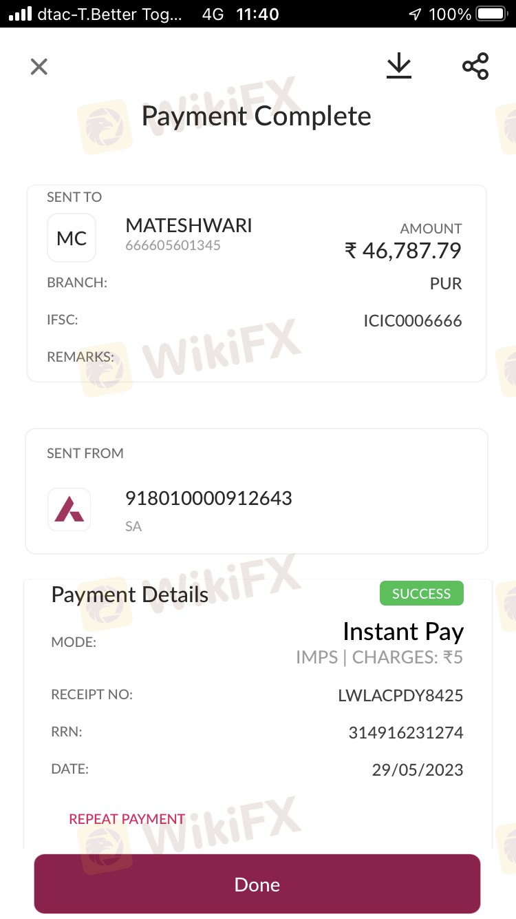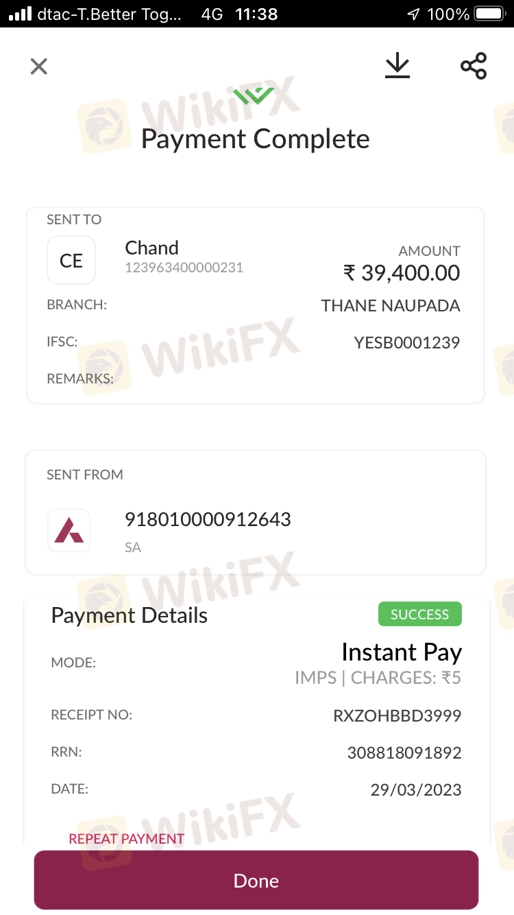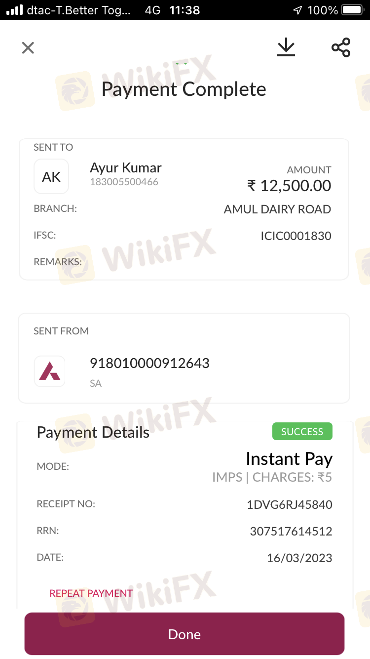 This one is last transfer as 566$ they asked me for tax to withdraw my amount, and I deposit. After they say you traded many times in a single day , your account has problem. So deposit more 500$ for inspection. But I refused to deposit more and they say we will not withdraw without deposit. After some time they say we will give you withdraw after sometime , but now they prohibit my account