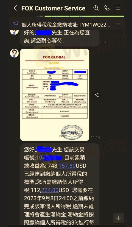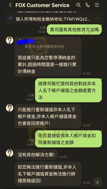 我是透過交友網站認識女性網友,該網友介紹我使用Fox Global外匯交易平台投入了一百萬至今不給出金,我多方思慮後才下了沉重決定繳納代繳服務費並最後一次選擇相信券商,結果還是無法出金