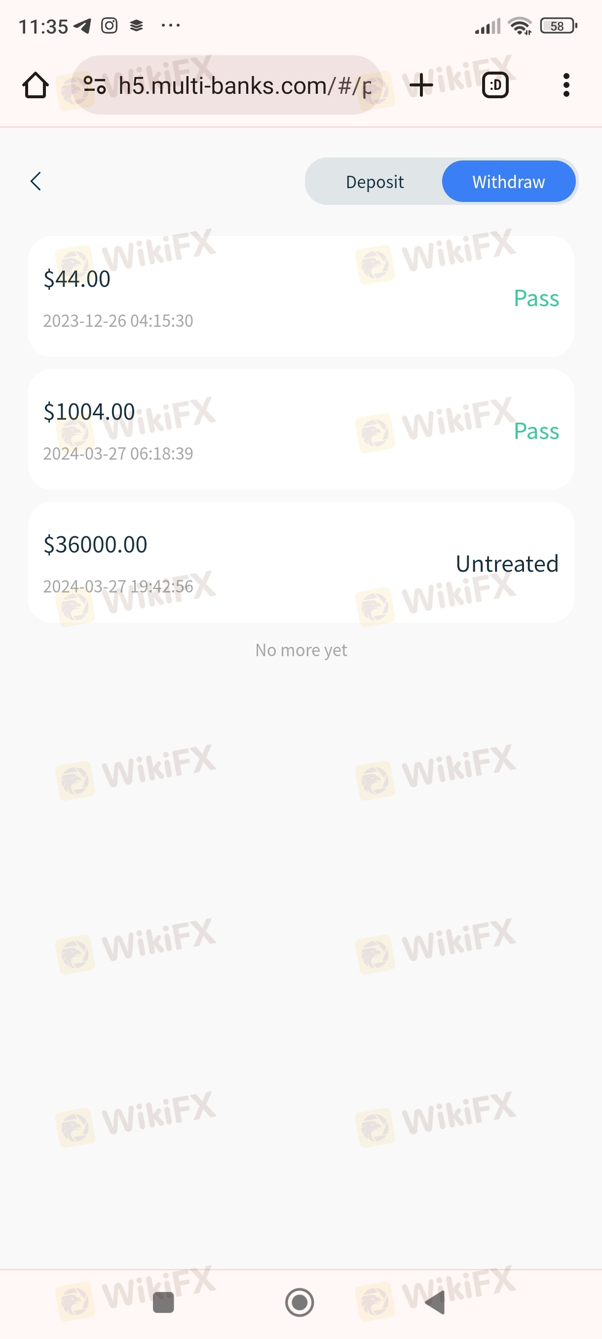 鉴于外汇行业的错综复杂,不排除有个别外汇交易商通过欺骗手段获得监管机构的合法注册。如WikiFX所公布数据与实际情况有不符之处,请通过WikiFX“投诉”和“纠错”功能,向我们提出,我们将及时进行核实查证,并公布相关结果。