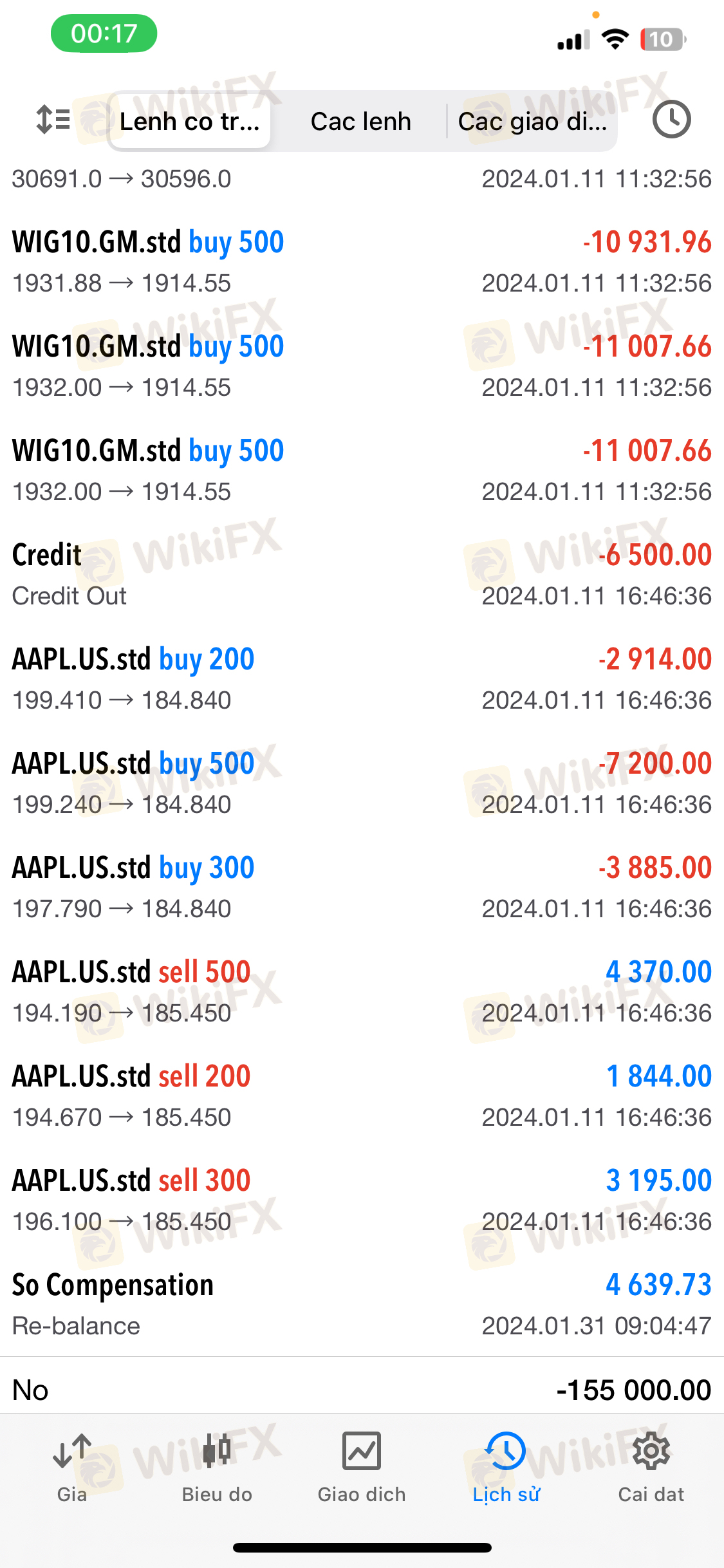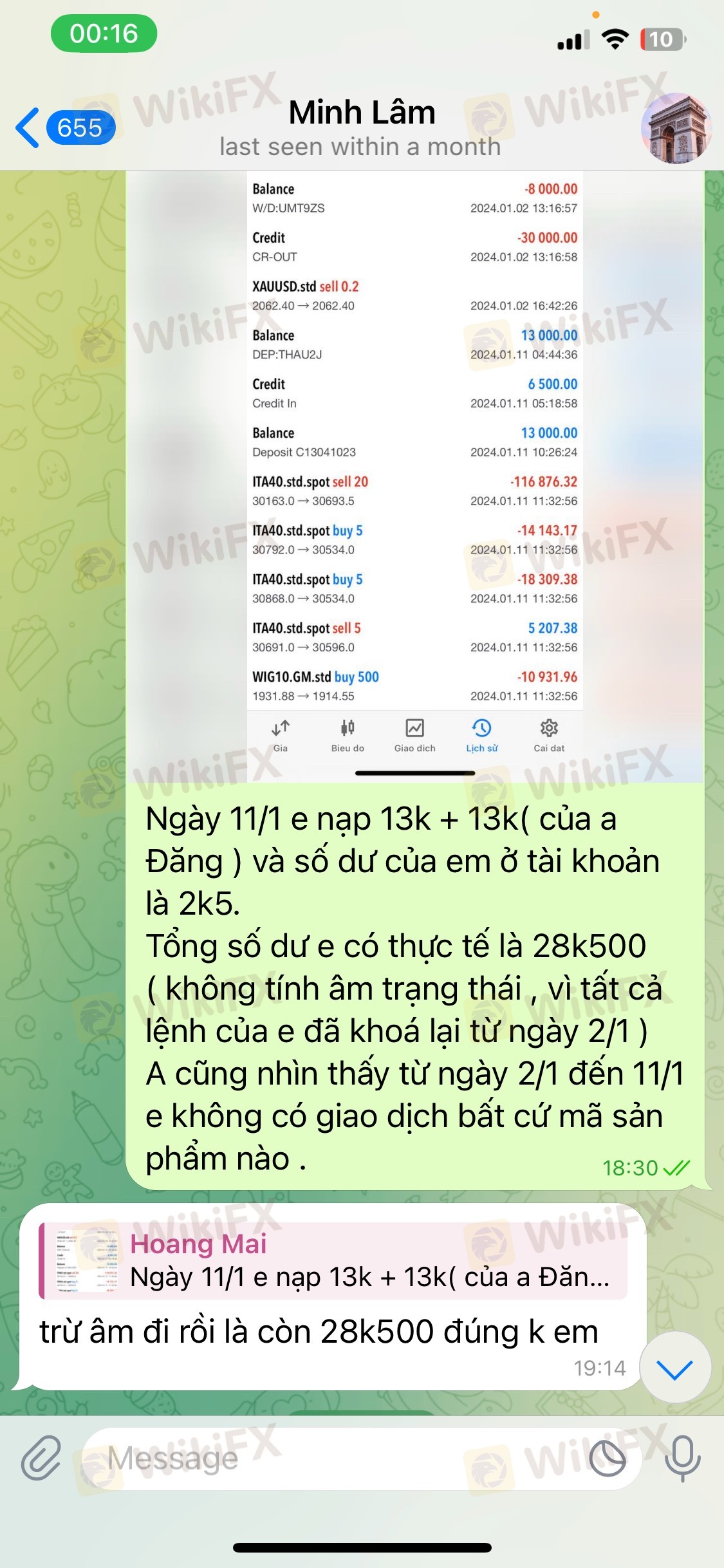- Sau khi cắt âm 13k đối với lệnh XPTUSD thì người bên sàn gọi và báo là phải đi 1500 cổ p hiếu thưởng WIG10 để hợp pháp hoá 13k hoàn về tài khoản, tôi không có đồng ý vì mình đã giao dịch đủ số lốt theo như thoả thuận .