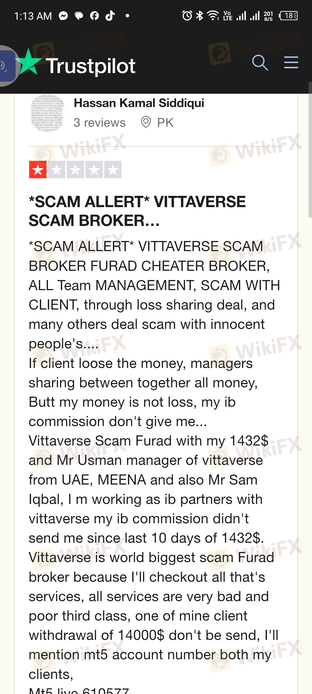 Vittaverse Scam Furad with my 1432$ and Mr Usman manager of vittaverse from UAE, MEENA and also Mr Sam Iqbal, I m working as ib partners with vittaverse my ib commission didn't send me since last 10 days of 1432$. Vittaverse is world biggest scam Furad broker because I'll checkout all that's services, all services are very bad and poor third class, one of mine client withdrawal of 14000$ don't be send, I'll mention mt5 account number both my clients,