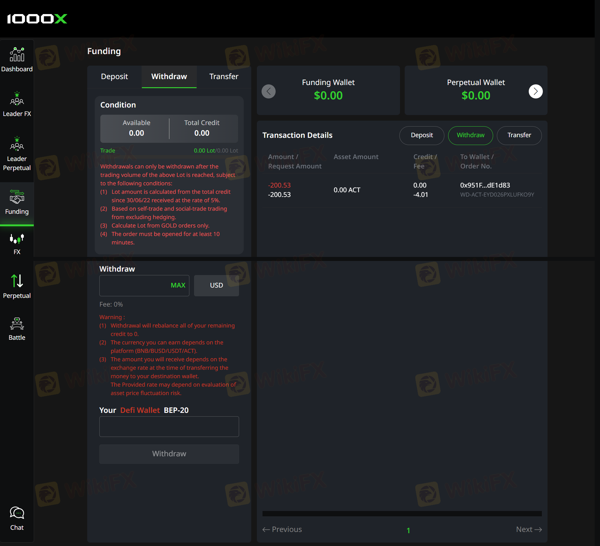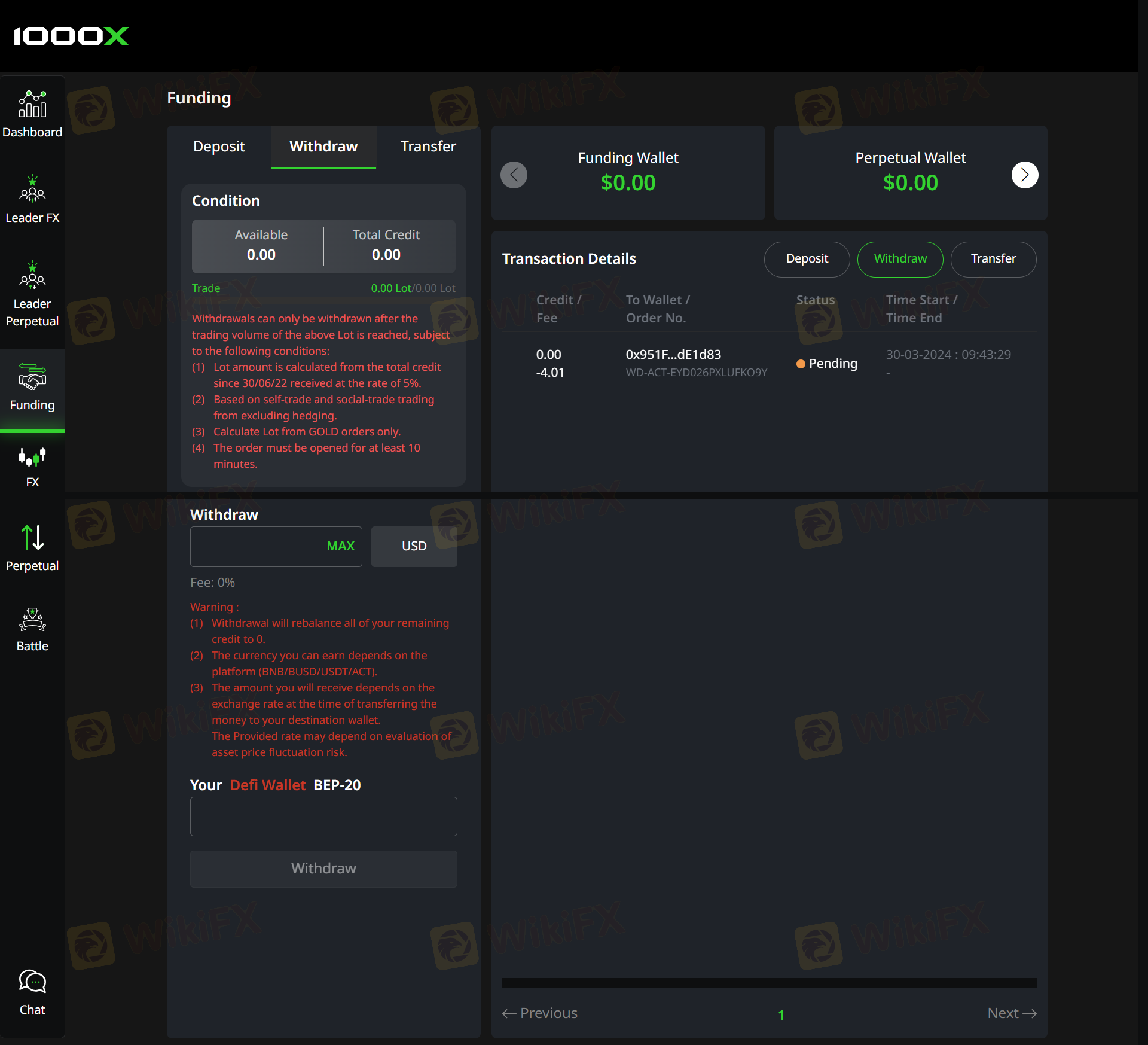 ถอนเงิน 200 usdt จาก 1000x ไปยังบัญชี Bep-20 -0x951F12f0bD36F5290608f554ED4dD70266dE1d83ขึ้น pending นานมาก