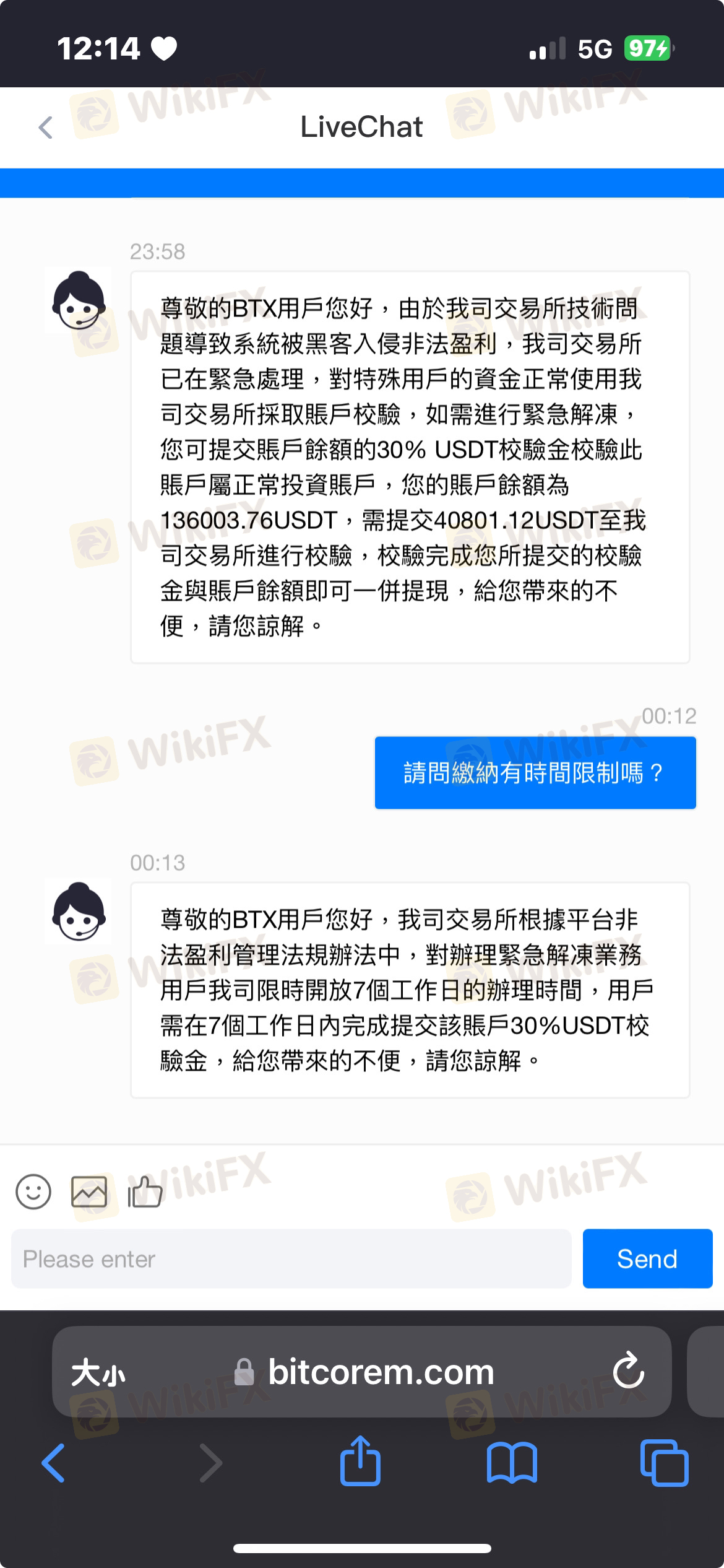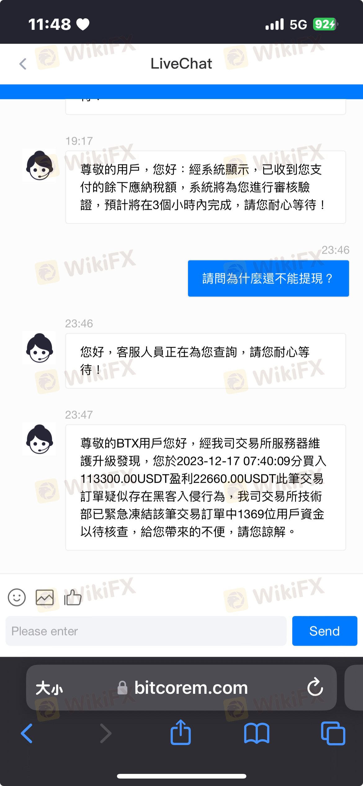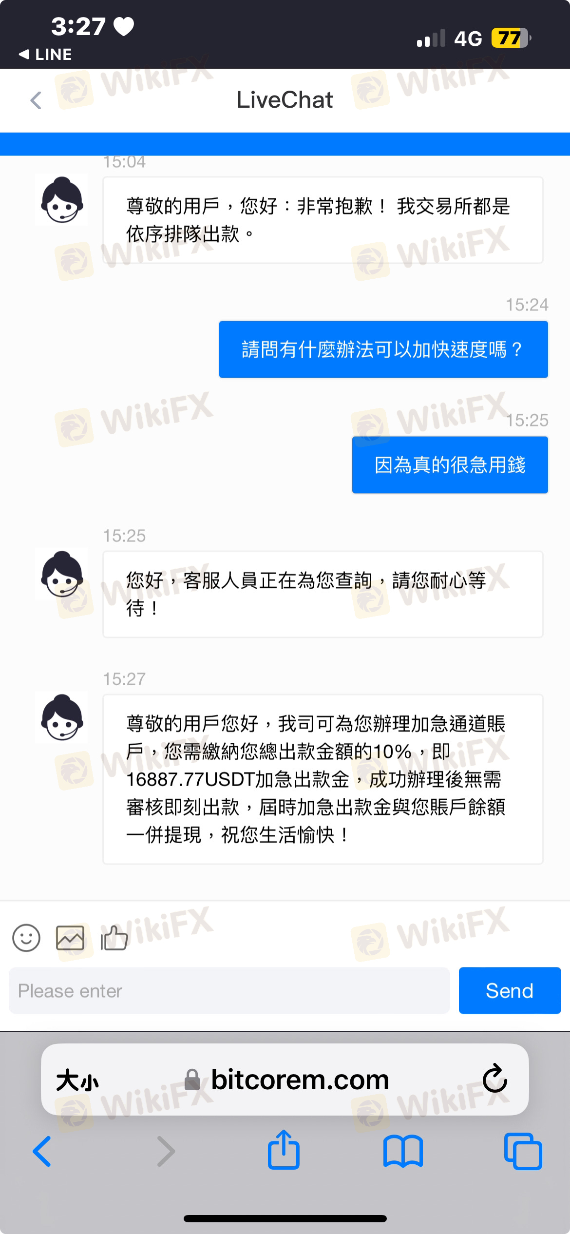 11月初在網上認識大陸男頻繁聊天一段時間後說要帶我賺錢就下載一堆app然后找了幣商買幣入火幣在轉到Bitcore這個網站的錢包第一次放3萬有賺到8千塊,後面要求放全部的錢還打電話要求我去貸款用更多的錢,說數據不是每次都有要好好保握,然后就真的傻傻把自己的錢都投下去了(30萬)後來等拿出來的時候發現要繳稅20%只好去銀行貸款20萬還不夠後面部分是大陸男說把公司車拿去貸款才補上的,結果繳完又說什麼疑似駭客入侵的要繳效驗金沒辦法只好去民銀貸款24萬補上在跟朋友借4萬2補上後面又要等60-90天?!大陸男還要我去找錢領出來到現在還想騙我
