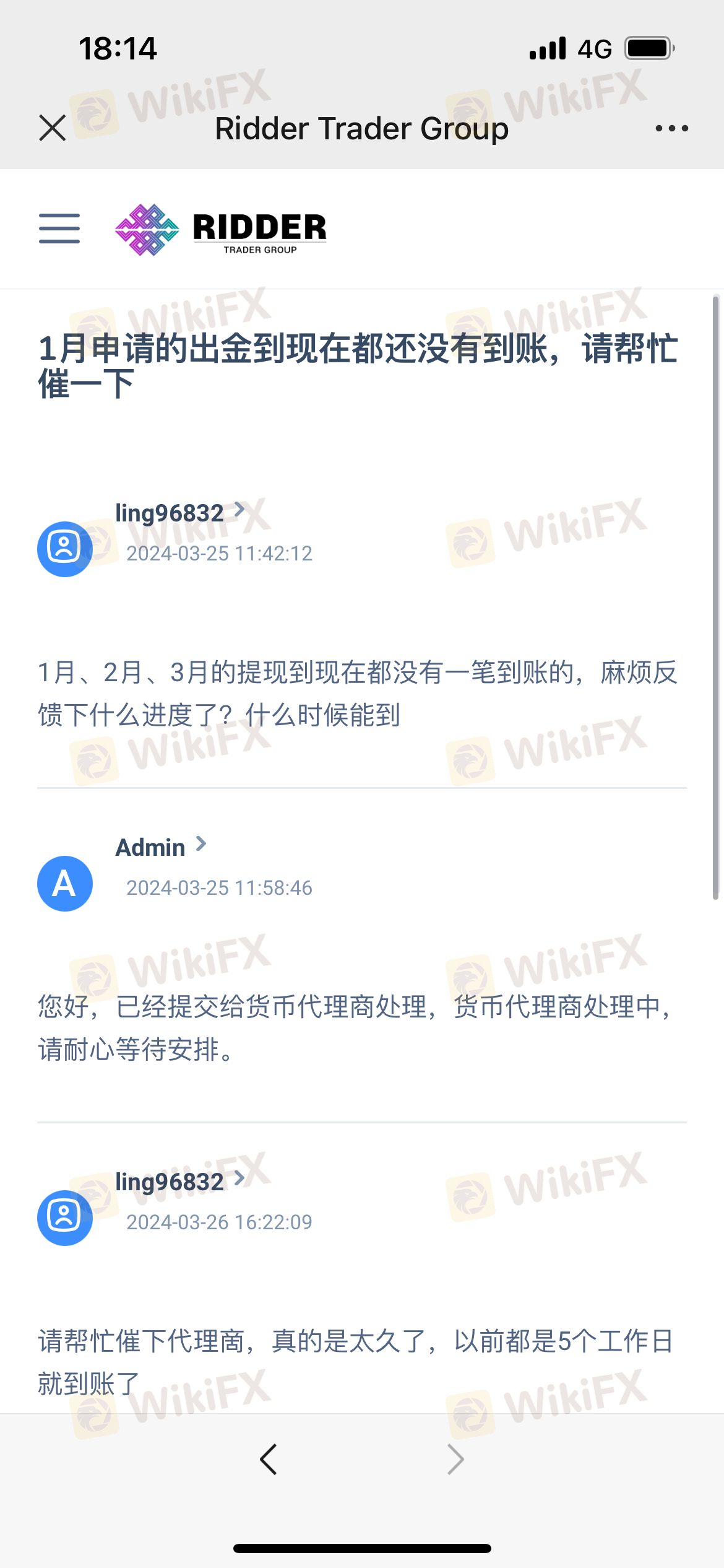 2024年至今提现均未到账,咨询客服,就说已经提交货币代理商处理。往日均是5个工作日左右到账,自2023年12月当期提现差不多一个月到账,但2024年开始就未到账过,一开始说是监管问题,货币代理商转账受限,说3月份恢复正常,但现在4月又开始了,还没解决。