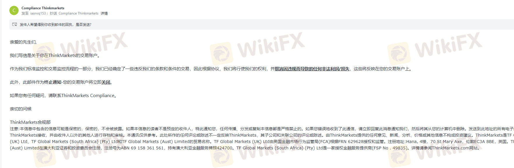 在线客服让我发了3个月的的邮件,一直没回过邮件,现在终于答复了,说是违反了他们的条款,交易账户被立即关闭,我的账户是亏损的,这是直接黑掉了我6万U的本金