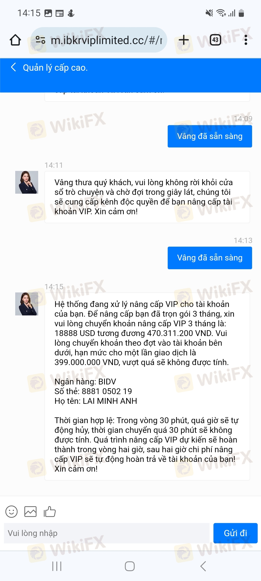 鉴于外汇行业的错综复杂,不排除有个别外汇交易商通过欺骗手段获得监管机构的合法注册。如WikiFX所公布数据与实际情况有不符之处,请通过WikiFX“投诉”和“纠错”功能,向我们提出,我们将及时进行核实查证,并公布相关结果。