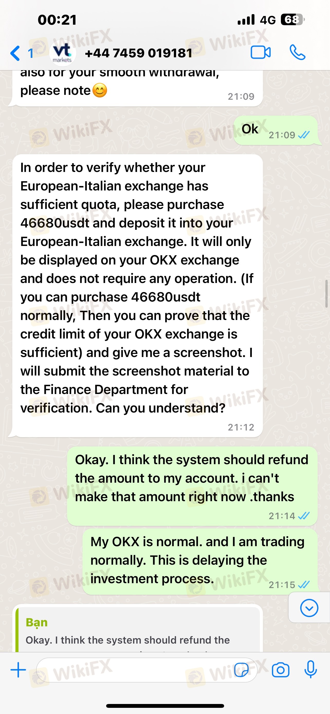 xin chào.tôi đang sử dụng giao dịch trên sàn Qsmov. tài khoản của tôi đã có 110.990.92 usdt.tôi đã thực hiện lệnh rút 100.000usdt qua kênh VT vào ngày 28/3/2024 đến địa chỉ của okx và hệ thống đã báo lỗi vì tài khoản chưa nâng cấp họ yêu cầu tôi nạp thêm 46.680usdt để chứng minh tài khoản có thể nhận được.tôi không thực hiện.tôi yêu cầu họ chuyển đổi qua kênh rút tiền qua thẻ ngân hàng.họ đã từ chối.qua nhiều lần từ chối.họ thông báo đóng băng tài khoản của tôi.bây giờ họ gửi email thông tôi phải nạp ít nhất 1000usd để rút tiền. tôi nghi ngờ đây là 1 hệ thống lừa đảo. bởi vì tất cả các thông tin của tôi họ đã xác minh chính xác. tôi hi vọng sẽ được hỗ trợ rút được tiền.