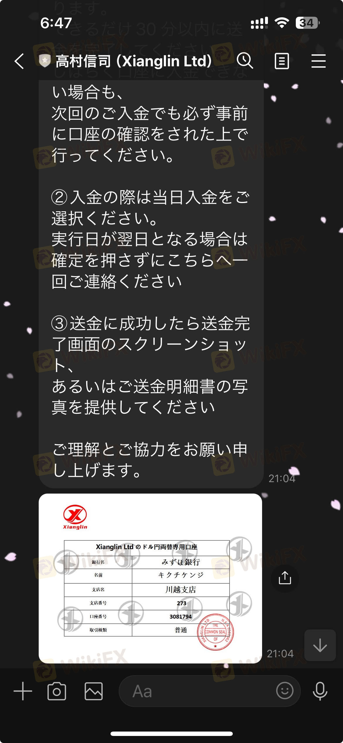 皆様へ、重要な注意喚起をお伝えします。私は最近、FX取引を装った詐欺に遭遇しました。この経験から、同じ過ちを犯さないよう他の方々に警鐘を鳴らしたいと思います。■被害の内容出金の不可能性: 「Xianglin」というプラットフォームを介して行われたFX取引において、出金が不可能な状態に陥りました。利益を確認できたとしてもそれを実際に手にすることができません。■担当者との連絡途絶: 高村信司氏を含むプラットフォームの担当者との連絡が完全に途絶えました。私からの連絡手段は一切遮断され、一方的な情報の不透明性にさらされています。■疑わしいLINEグループ: またすがのひろふみ、東坂隆彦、杉山美波からなるLINEグループも非常に疑わしいと感じています。このグループは、詐欺行為における誘導や情報操作に利用されている可能性があります。■原油プロジェクトの疑念: Xianglinを通じて提案される原油プロジェクトもまた、信頼性に欠けるものと判断しています。この種のプロジェクトは高いリターンを謳うものの、実際は投資者を罠にはめるための仕組みであることが多いです。■呼びかけこの通知は、私のように無実の投資家が詐欺の犠牲になることを防ぐためのものです。もしこれらの名前やプロジェクトに馴染みがある方がいらっしゃる場合は、最大限の注意を払ってください。皆様の安全と資産を守るために、このメッセージを広めていただければ幸いです。投資は慎重に、そして情報を十分に確認した上で行ってください。