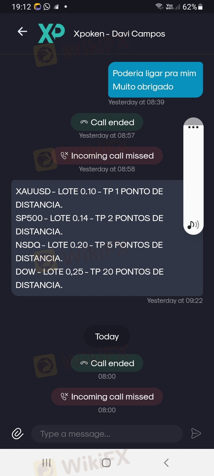 abri uma conta na empresa chamada xpoken e meu gerente tem o nome de Davi Campos e envesti 100 dólares comecei a fazer investimento no ouro e depois de um mês investi mais 2000 mil dólares e comecei a investir no ouro e na s&p 500 e comecei a ganhar um valor legal aí o gerente falou pra mim investir mais para ter uma ação da empresa chamada Google falei pra ele que não tinha dinheiro para isso e me deu a ideia de emprestar o dinheiro do banco que eu tenho conta bancaria no banco Itaú fui lá conversar com o gerente do Itaú para ver se eu conseguiria o imprestimo e pediram para eu aguardar 5 dias para,ver se eu conseguiria. aí o Davi Campos falou que ia me dar um crédito de 8.000 mil dólares até o dinheiro sair no banco Itaú mas não me falou que o valor de 2000 mil dólares ia ficar procurado se eu não paga-se esse crédito de 8000 mil dólares aí passando os 5 dias o dinheiro do banco Itaú o imprestimo não deu certo e o crédito da xpoken já estava na minha conta de investimento e já estava fazendo investimento no outro ouro s&p 500 nasdarq e daw Jones e uma ação da Google que no mesmo dia tive um rendimento da Google de 800 dólares e das outras teve o movimento de como fazia todos os dias.Ai como o imprestimo do banco Itaú não saiu ele falou que minha conta ia ficar bloqueada para qualquer tipo de retirada e se eu não pagar eles vão pegar todo o meus 2000 mil dólares para quitar o valor do crédito que ele Davi Campos tinha me colocado na minha conta ele me deu até dia 5 de abril para pagar e não consegui arrumar esse dinheiro de 8.000 mil dólares e pedi para cancelar o contrato que tinha feito do crédito de 8.000 mil dólares e ele falou que se eu cancelar o contrato eu perderia tudo nas ele não me disse que esse contrato era desse jeito pois estava querendo fazer tão rápido o negócio que eu não me toquei que estava caindo numa armadilha não sei se foi isso que aconteceu mas eu falei para ele Davi Campos cancelar o contrato e disse que não daria