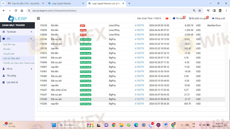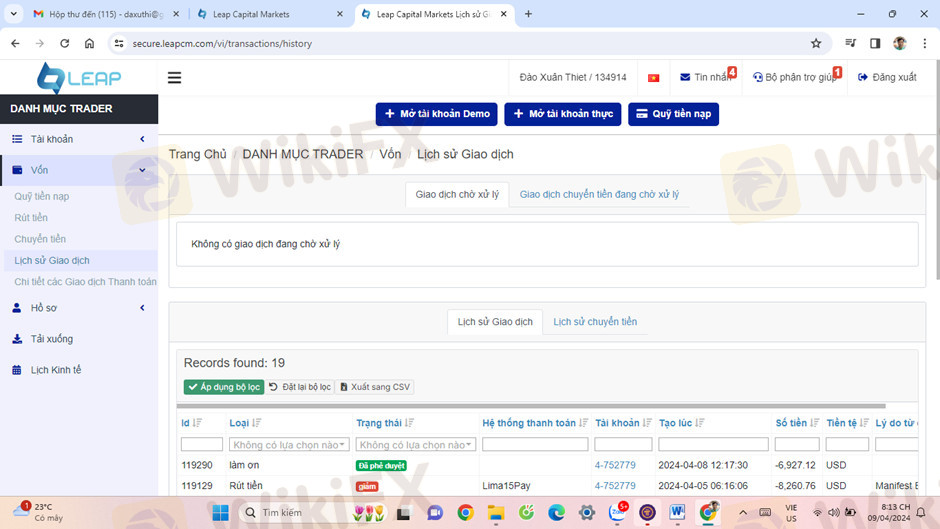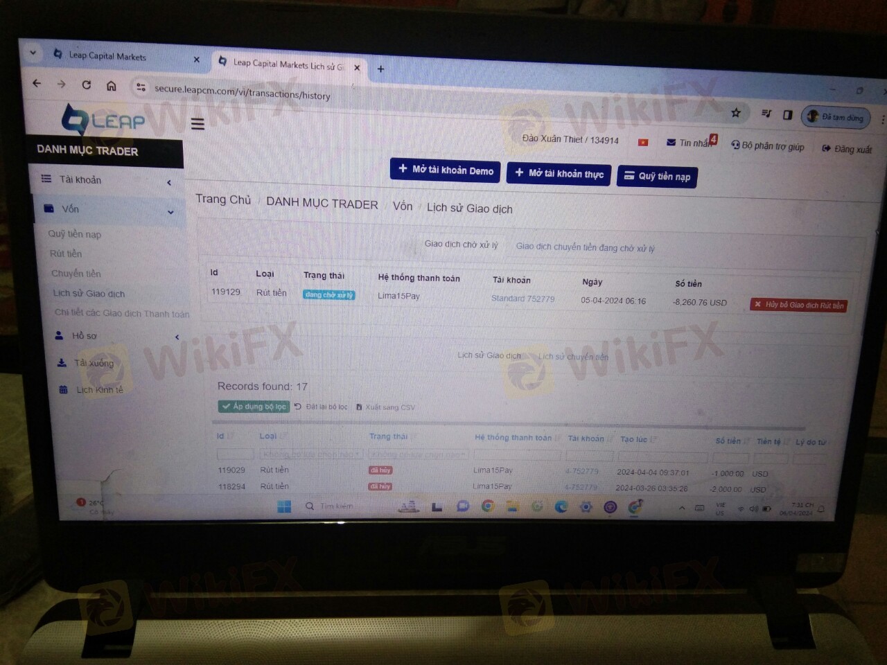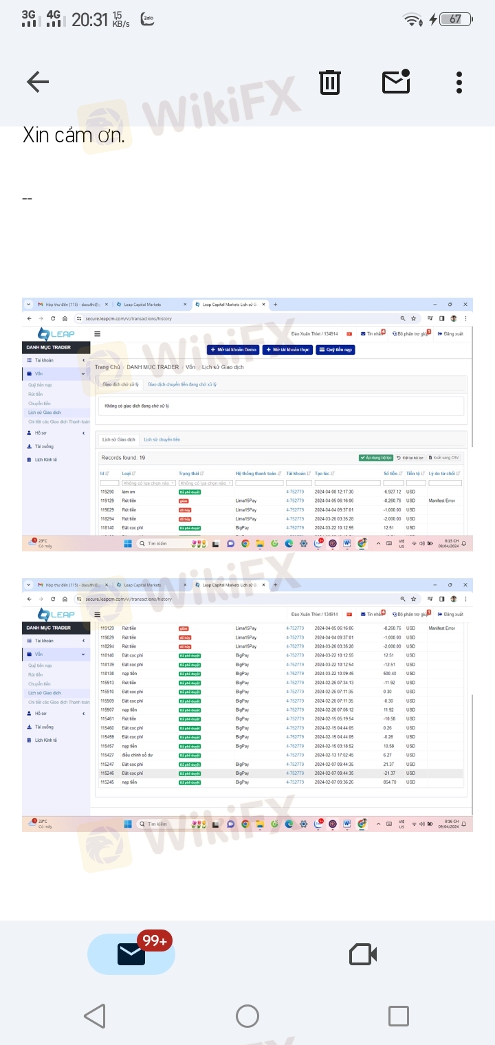 Sàn leap catital markets (leapcm.com) xử ép, vu khống, chiếm đoạt tiền của tôi là 6927,12usd