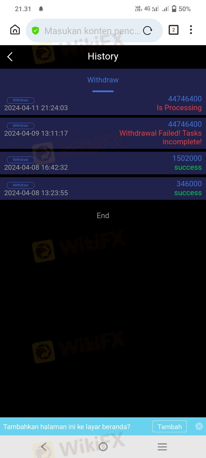 鉴于外汇行业的错综复杂,不排除有个别外汇交易商通过欺骗手段获得监管机构的合法注册。如WikiFX所公布数据与实际情况有不符之处,请通过WikiFX“投诉”和“纠错”功能,向我们提出,我们将及时进行核实查证,并公布相关结果。