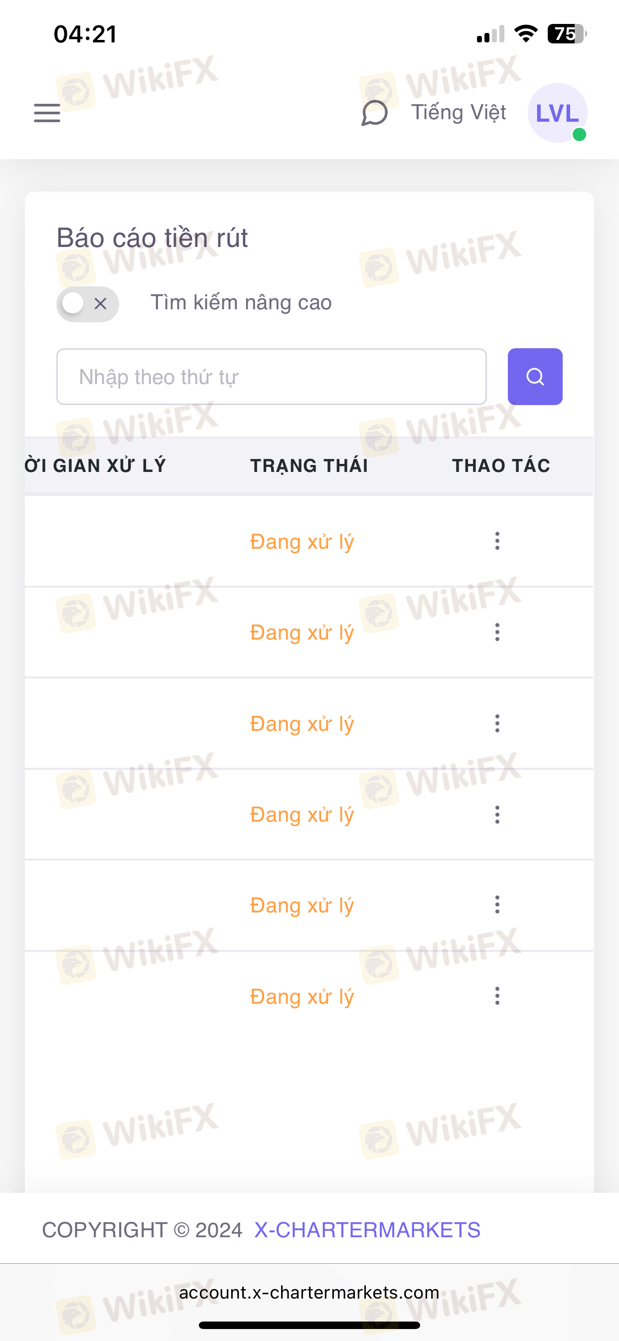 Ngày 05/04/2024 tôi đi lệnh rút tiền, sàn không phê duyệt lệnh rút. Nhưng trên app MT5 tôi đã bị trừ toàn bộ tiền. Hai ngày sau tôi được sàn trả lại tiền gốc và mất toàn bộ 57.000$ tiền lãi