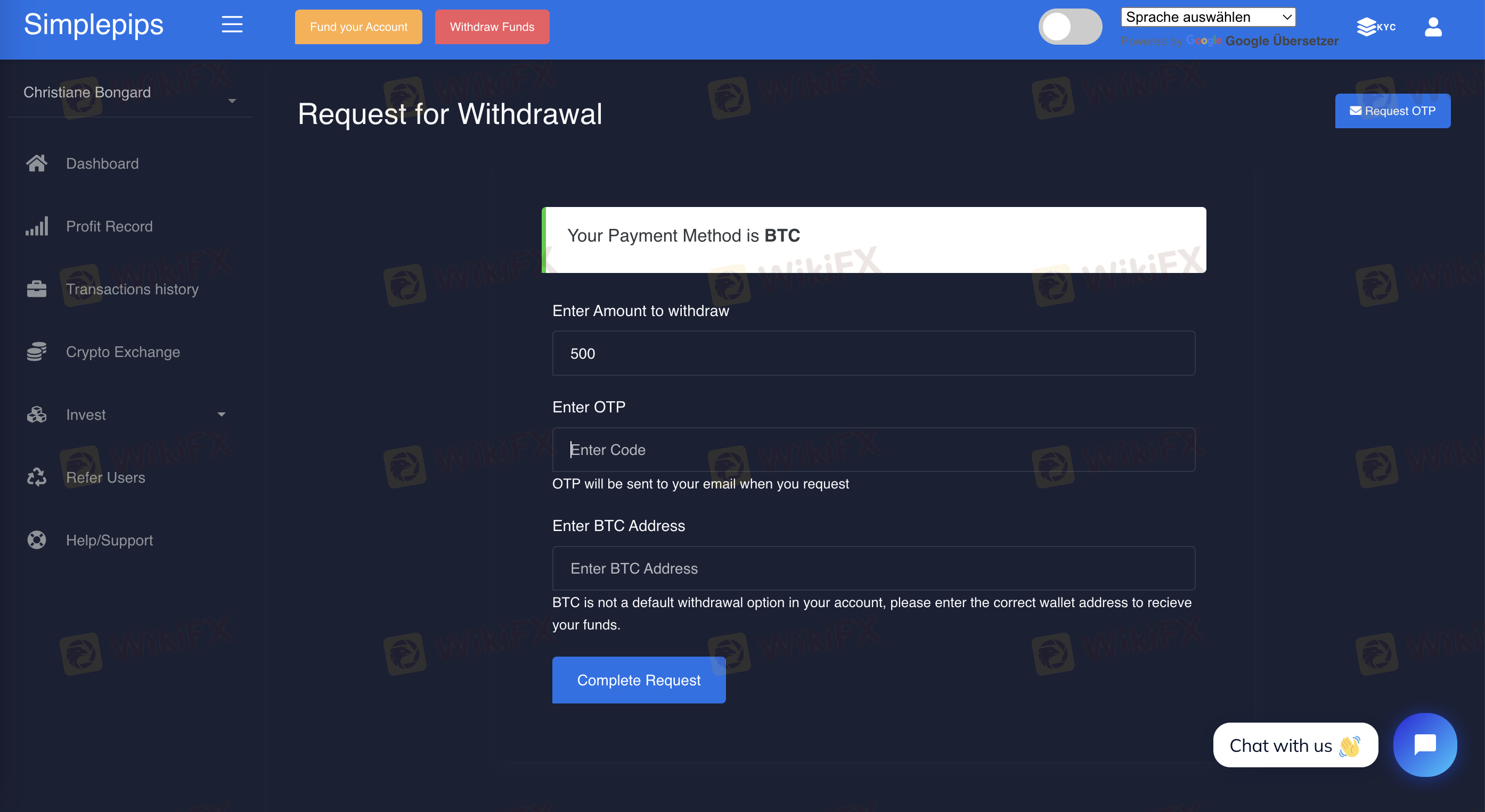 I got approached on Facebook to invest in trading on simplepipsmarket.com.I invested the first 200 and then 500 USD. The amount went up very fast and then did not move further. I was told I must invest 500 USD more to continue trading. I did so and it went up to 8000. I tried to withdraw 500 USD. One has to click on the link for an OTP. I did and got an error message. I wrote to support and was told I needed to pay another 1500 USD for the next level subscription to continue trading and after 3 weeks I would able to take out money. I saw the company is not licensed and found additionally that the person who approached me has a large number of fake profiles on Facebook. I attached screenshots.