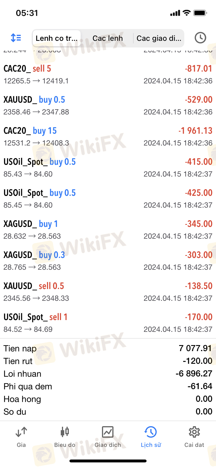 tôi được chào mời tham gia đầu tư với cam kết lợi nhuận 10%/1 tuàn, ngày 8/4/2024 tôi nạp 2000 usd, đến ngày 10/4/2024 tôi lại nạp tiếp 2000 usd, ngày 15/4/2024 tk tôi đã bị cháy, mọi giao dịch do trade của sàn hỗ trợ
